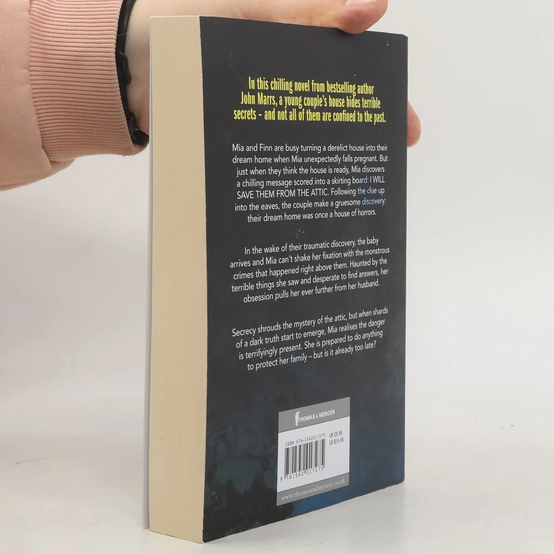 In this chilling novel from bestselling author John Marrs, a young couple's house hides terrible secrets--and not all of them are confined to the past. Mia and Finn are busy turning a derelict house into their dream home when Mia unexpectedly falls pregnant. But just when they think the house is ready, Mia discovers a chilling message scored into a skirting board: I WILL SAVE THEM FROM THE ATTIC. Following the clue up into the eaves, the couple make a gruesome discovery: their dream home was once a house of horrors. In the wake of their traumatic discovery, the baby arrives and Mia can't shake her fixation with the monstrous crimes that happened right above them. Haunted by the terrible things she saw and desperate to find answers, her obsession pulls her ever further from her husband. Secrecy shrouds the mystery of the attic, but when shards of a dark truth start to emerge, Mia realises the danger is terrifyingly present. She is prepared to do anything to protect her family--but is it already too late?