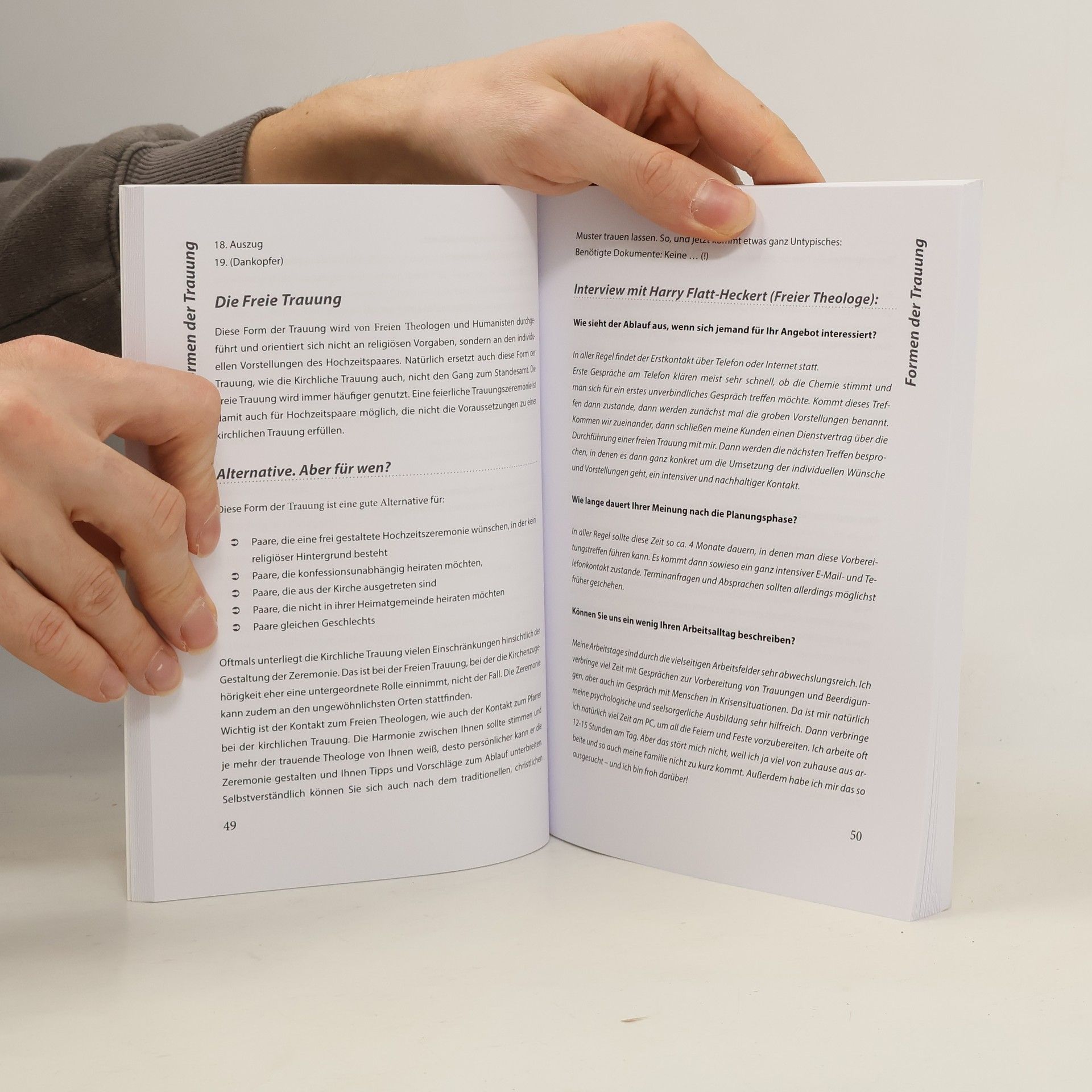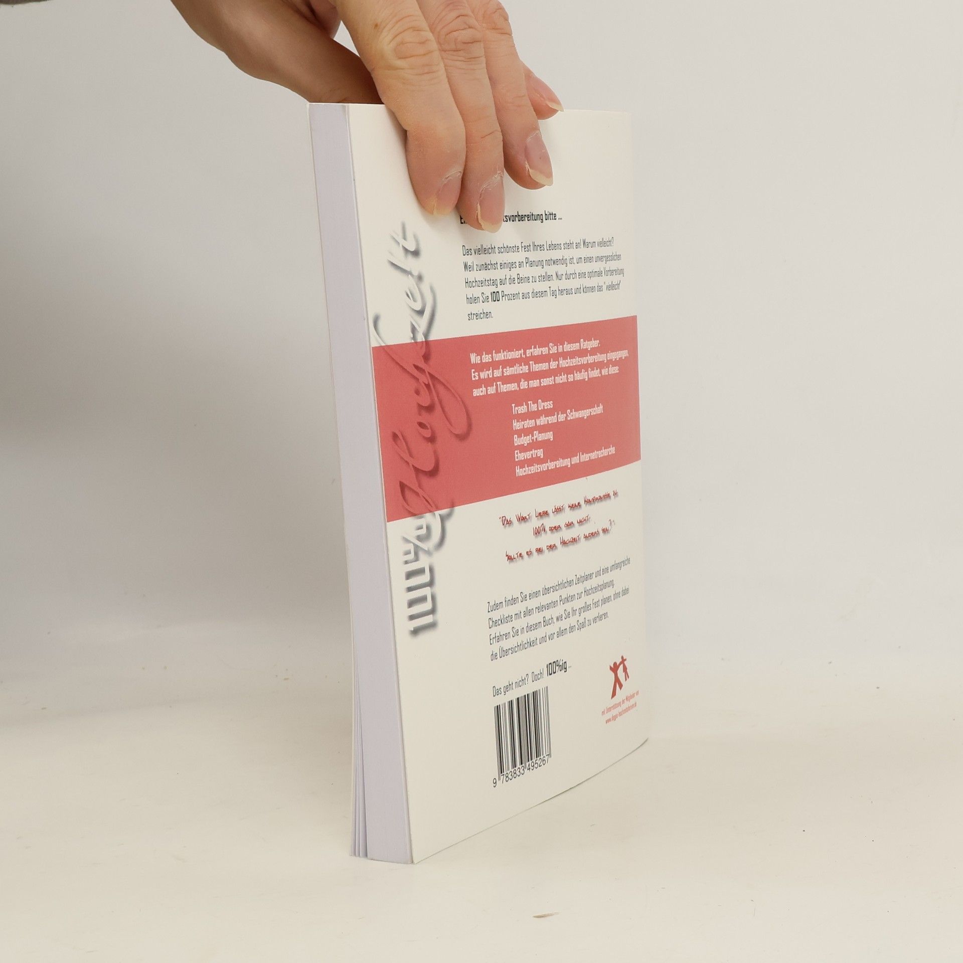 Es bestehen bereits zahlreiche Ratgeber zum Thema Hochzeit, doch bei dem vorliegenden Buch geht es nicht nur um die graue Theorie. Es möchte nicht bloß aufklären, sondern motivieren und vor allem unterhalten. Oft vernachlässigte Themen werden ebenfalls angesprochen, wie Trash-the-dress, Heiraten in der Schwangerschaft, Hochzeitsvorbereitung und Internetrecherche und viele mehr. Auch das vermeintlich komplizierte Thema Ehevertrag findet Erwähnung, in einer verständlichen Form mit diversen Gestaltungsbeispielen. Professionelle Dienstleister, wie Fotografen und Freie Theologen geben Insider-Tipps und zeigen, worauf Heiratende bei der Wahl der Anbieter zu achten haben. Abgerundet wird das Buch durch eine ausführliche Checkliste mit allen relevanten Punkten zur Vorbereitung der Hochzeit.