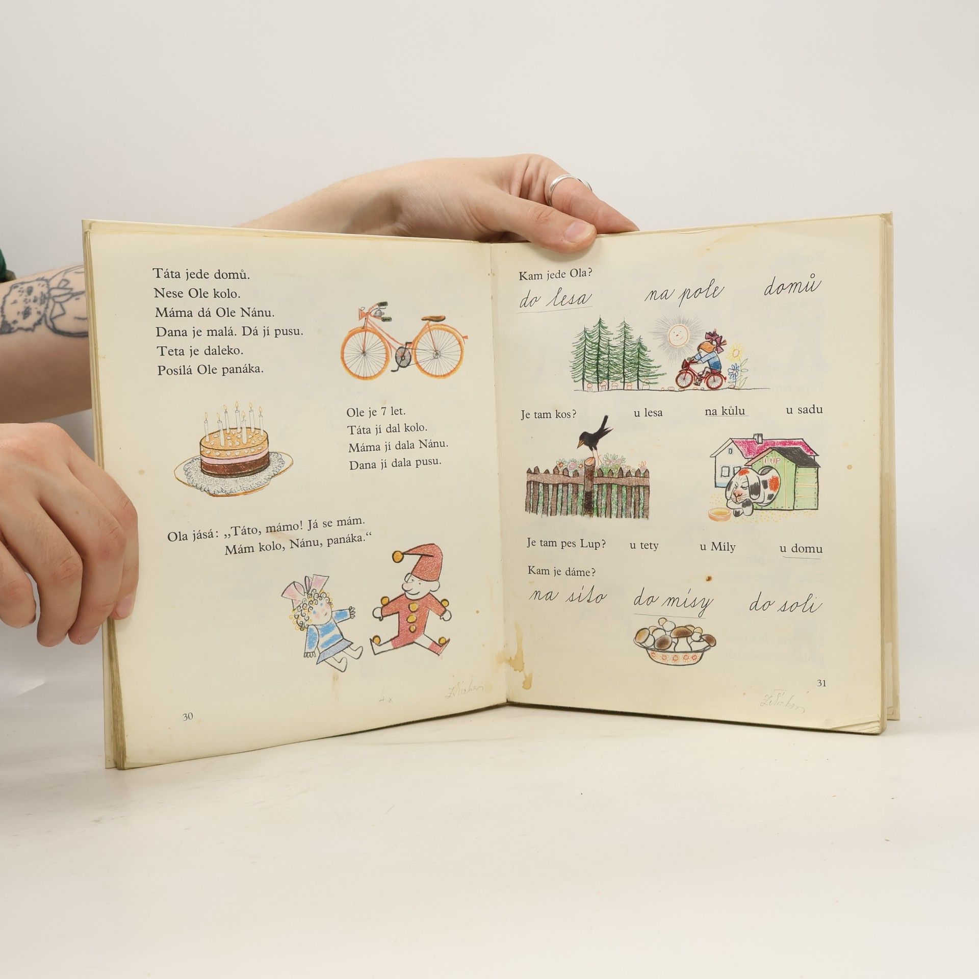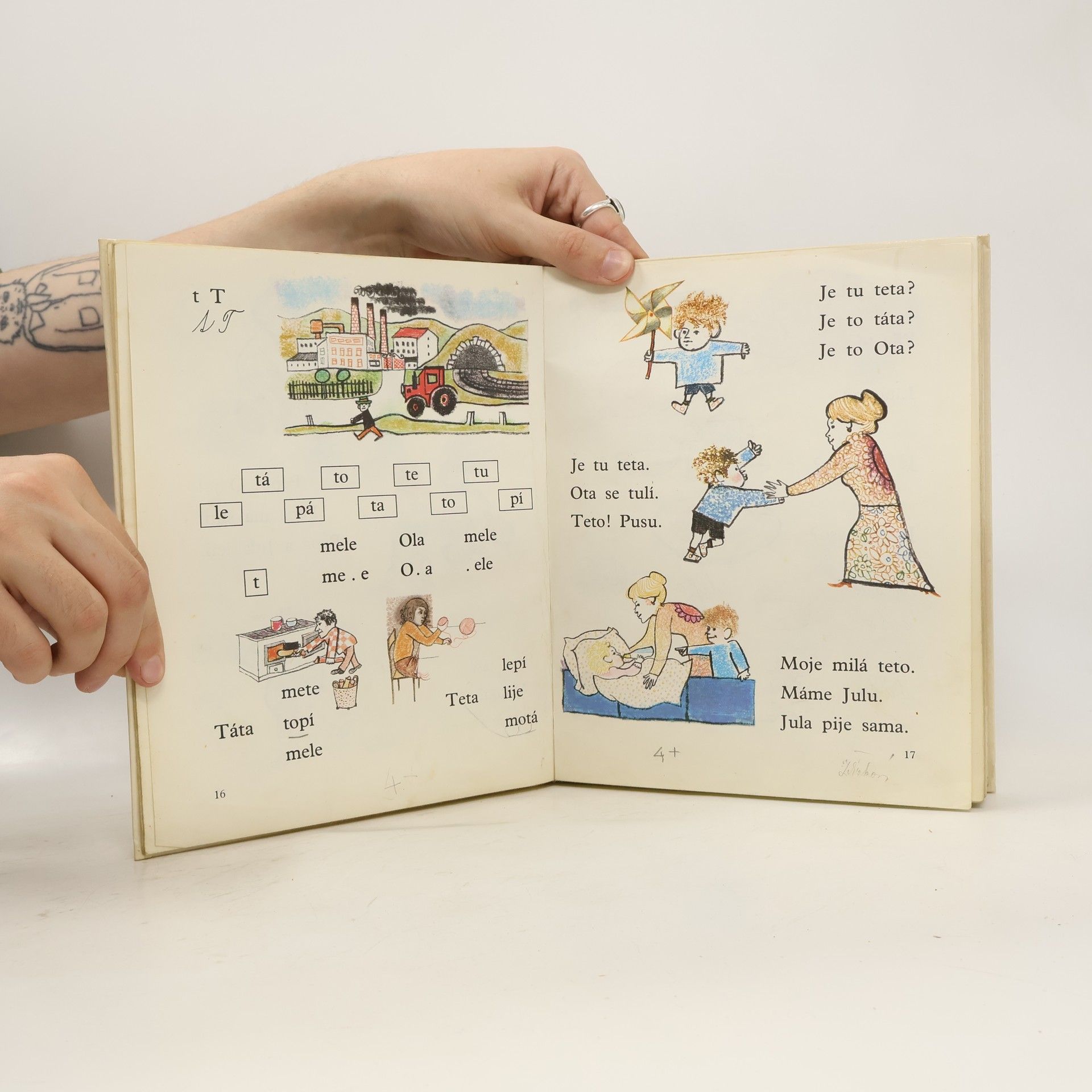 Učebnice obsahuje slabiky a slova pro nácvik uvědomělého čtení, dětské básně, říkadla a krátké příběhy s častou frekvencí přímé řeči. Slabikář byl oceněn Zlatou stuhou 1993 a téhož roku získal i Cenu Comeniana.