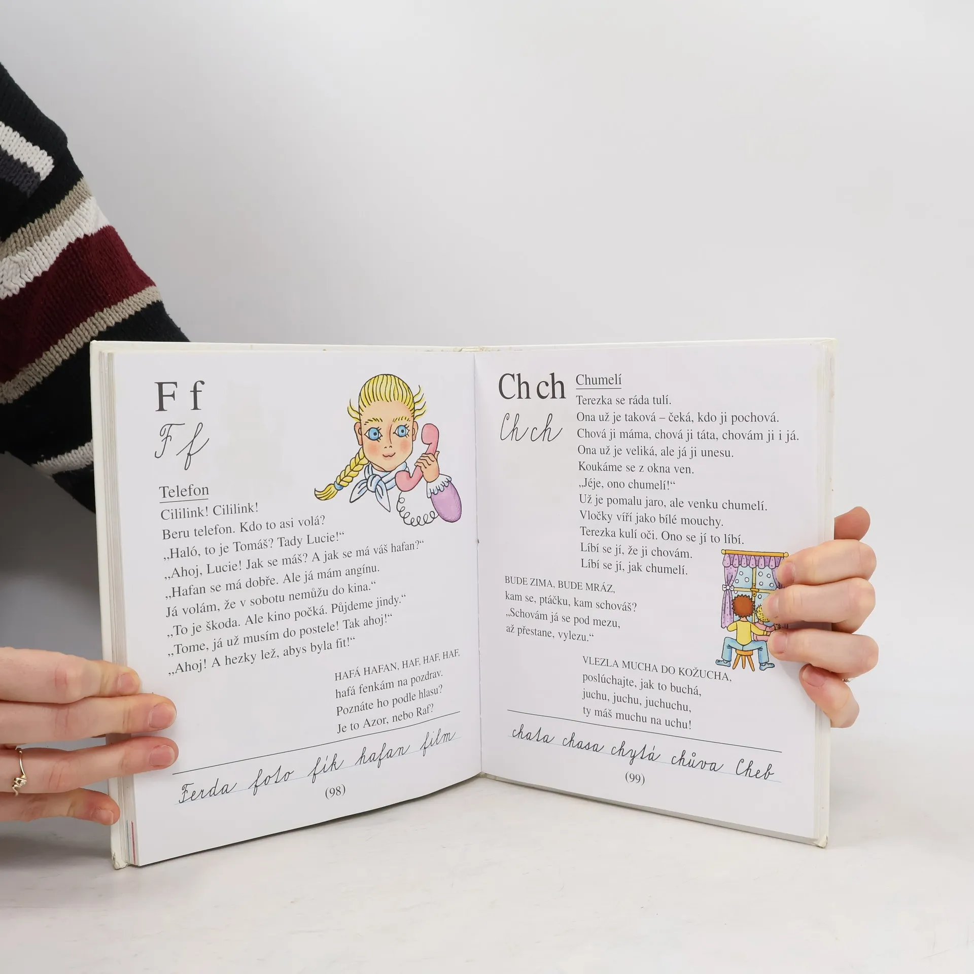 Učebnice obsahuje slabiky a slova pro nácvik uvědomělého čtení, dětské básně, říkadla a krátké příběhy s častou frekvencí přímé řeči. Slabikář byl oceněn Zlatou stuhou 1993 a téhož roku získal i Cenu Comeniana.