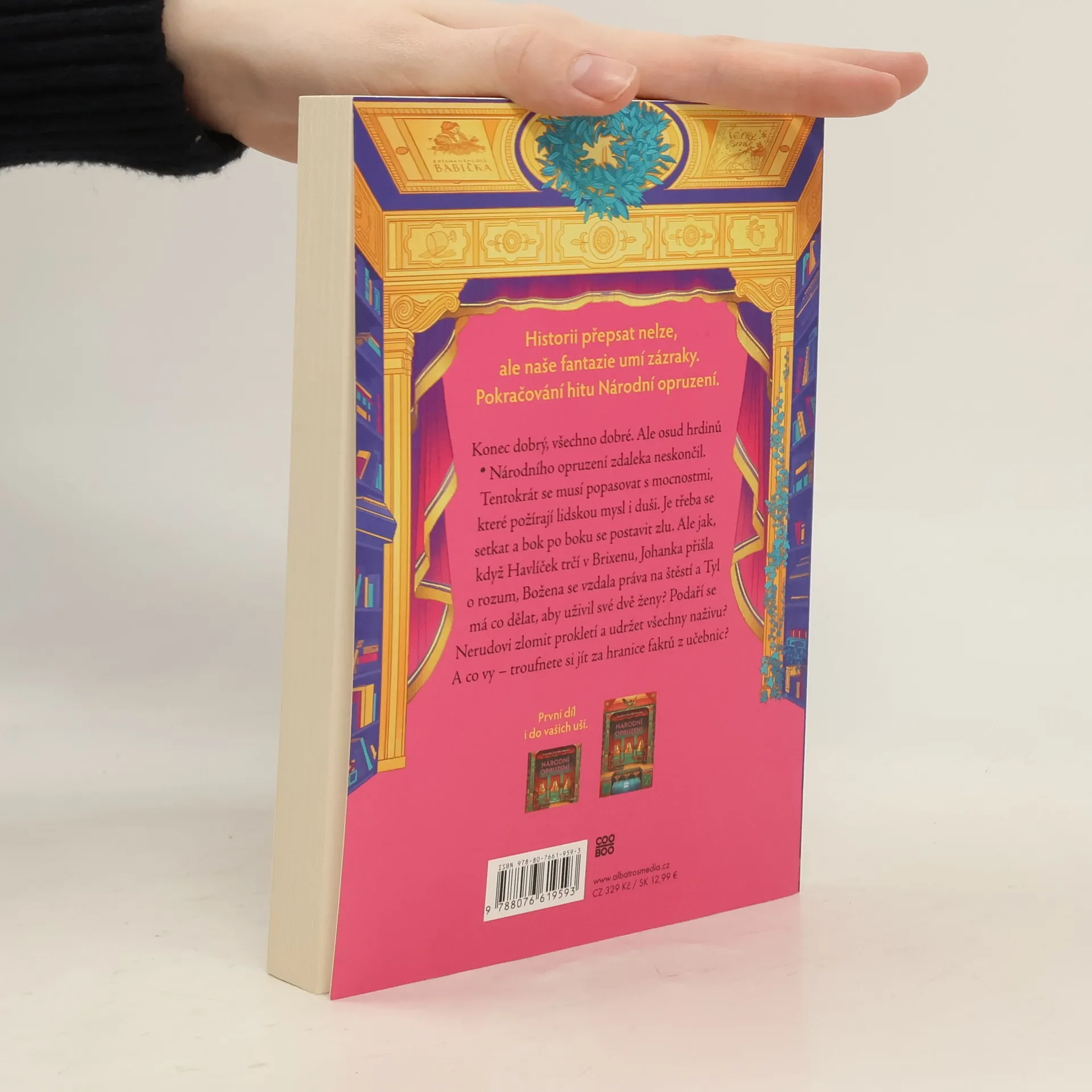 Román, který navazuje na knihu Národní opruzení: Konec dobrý, všechno dobré. I zde se autorka odvažuje zajít za hranice faktů ze školních učebnic. Historii přepsat nelze, ale naše fantazie umí zázraky. Pokračování hitu Národní opruzení. Konec dobrý, všechno dobré. Ale osud hrdinů Národního opruzení prvním dílem zdaleka neskončil. Tentokrát se musí popasovat s mocnostmi, které požírají lidskou mysl i duši. Je třeba se opět setkat ve stejný čas na jednom místě a bok po boku se postavit zlu. Ale jak, když Havlíček trčí v Brixenu, Johanka přišla o rozum, Božena se vzdala práva na štěstí a Tyl má co dělat, aby uživil své dvě ženy? Podaří se Nerudovi zlomit prokletí a udržet všechny naživu? Nakladatelská anotace.