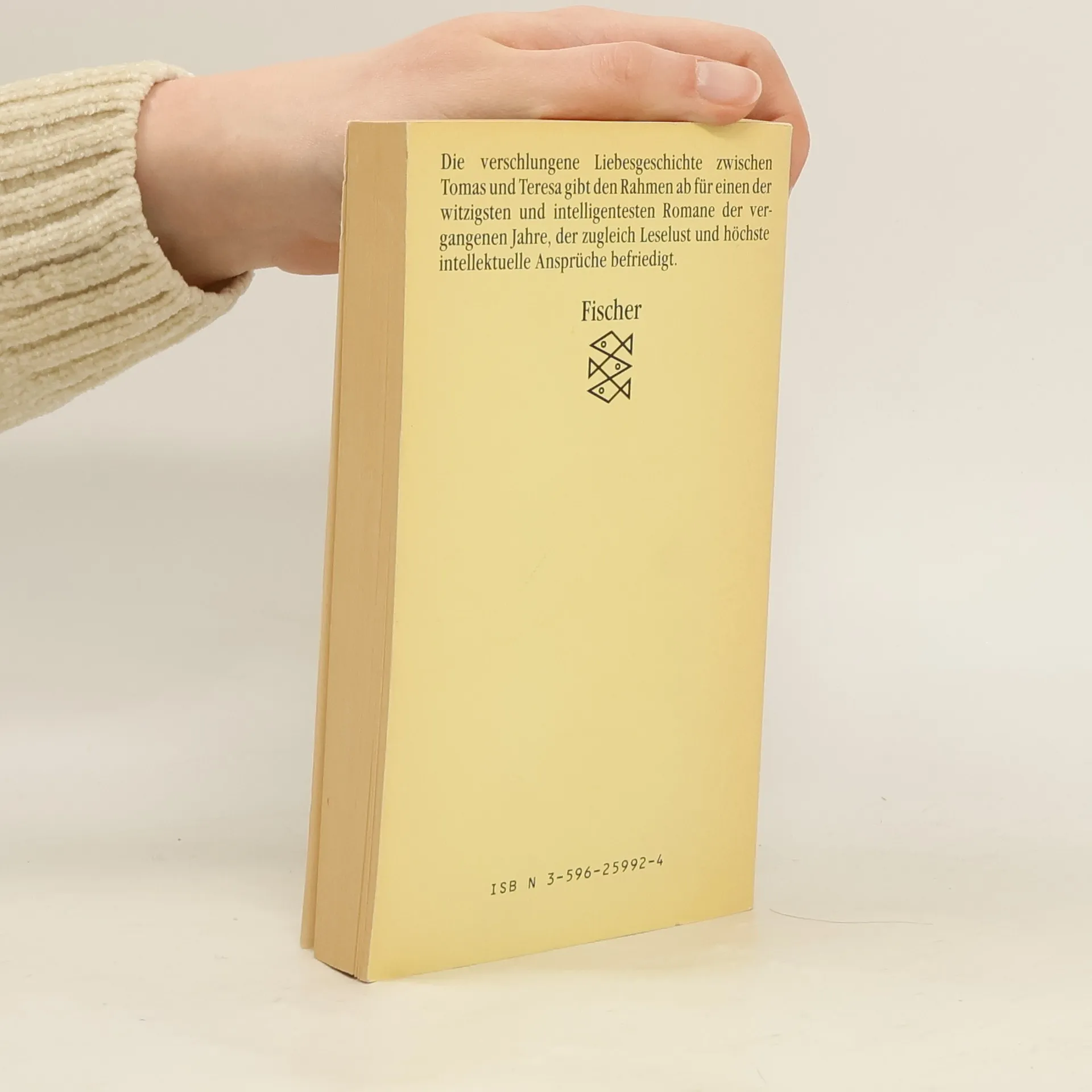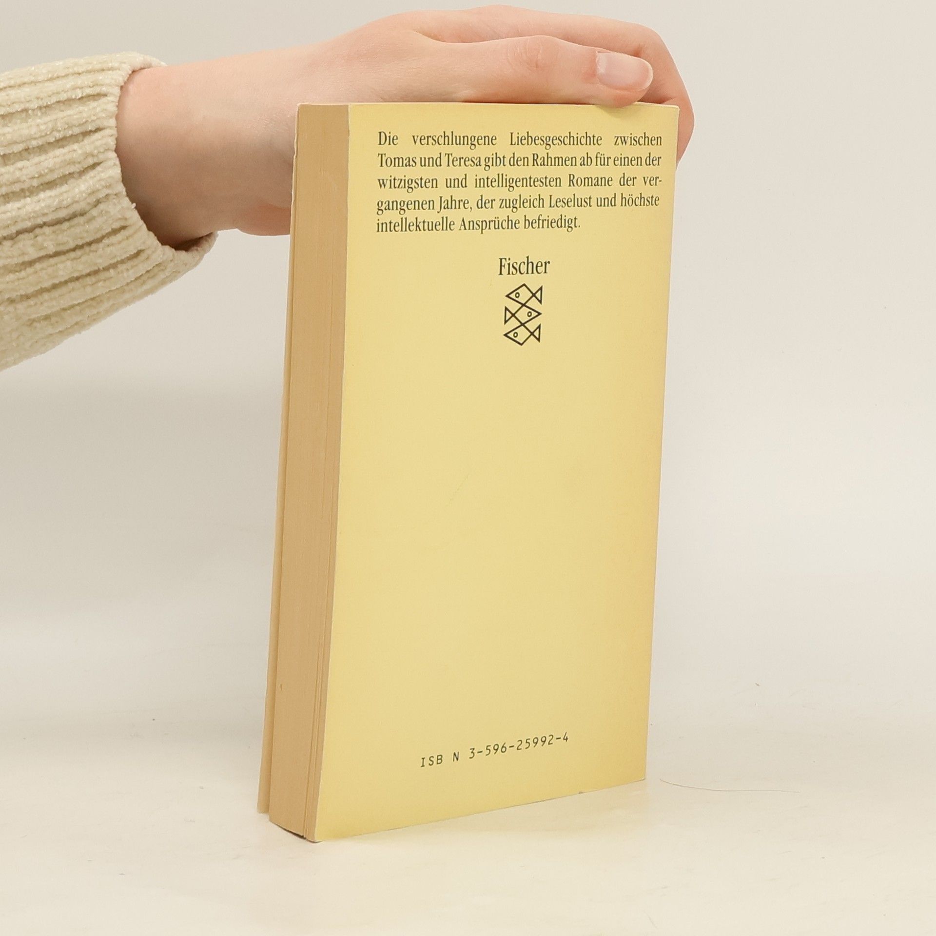 Milan Kundera: "Die unerträgliche Leichtigkeit des Seins". Roman. Aus dem Tschechischen von Susanna Roth. Fischer Taschenbuch Verlag, Frankfurt am Main 1987. Nr. 5992. 300 S., br., 9,80 DM