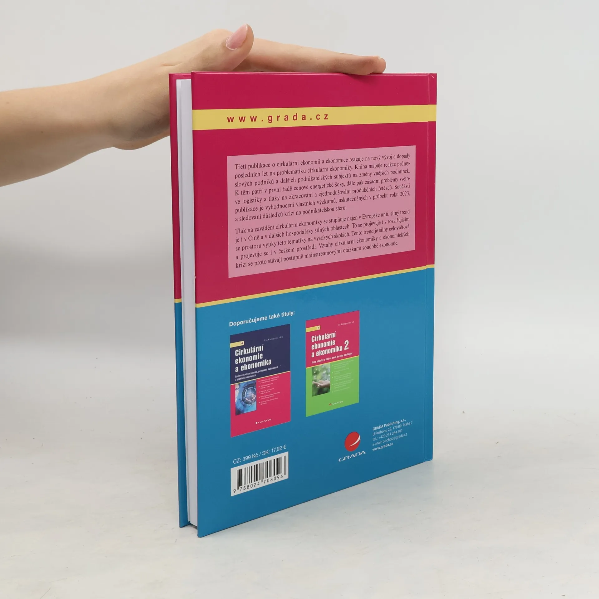 Třetí publikace o cirkulární ekonomii a ekonomice reaguje na nový vývoj a dopady posledních let na problematiku cirkulární ekonomiky. Kniha mapuje reakce průmyslových podniků a dalších podnikatelských subjektů na změny vnějších podmínek. K těm patří v první řadě cenové energetické šoky, dále pak zásadní problémy světové logistiky a tlaky na zkracování a zjednodušování produkčních řetězců. Součástí publikace je vyhodnocení vlastních výzkumů, uskutečněných v průběhu roku 2023, a sledování důsledků krizí na podnikatelskou sféru. Tlak na zavádění cirkulární ekonomiky se stupňuje nejen v Evropské unii, silný trend je i v Číně a v dalších hospodářsky silných oblastech. To se projevuje i v rozšiřujícím se prostoru výuky této tematiky na vysokých školách. Tento trend je silný celosvětově a projevuje se i v českém prostředí. Vztahy cirkulární ekonomiky a ekonomických krizí se proto stávají postupně mainstreamovými otázkami soudobé ekonomie.