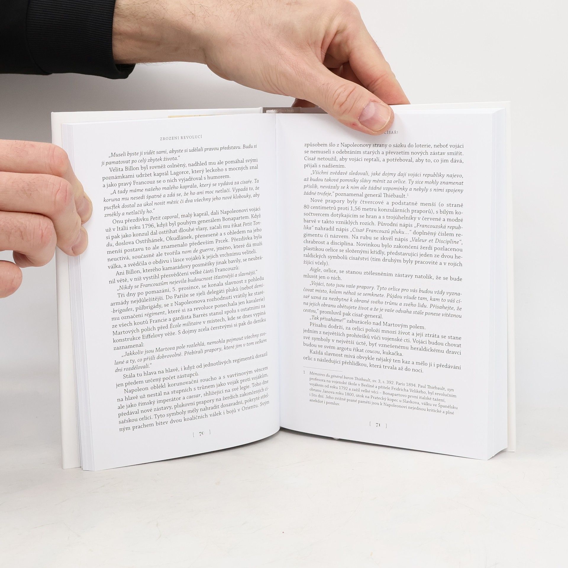 O Napoleonovi, jeho bitvách a velkých rozhodnutích generálů napoleonské éry bylo potištěno mnoho stran. Kdo ale byli a jak žili muži, na jejichž bedrech vítězství francouzského císaře stála? Autor vtahuje čtenáře do prožitků vojáků počínaje ať už více, či méně dobrovolným vstupem do armády a pomáhá pochopit proměnu mladého rekruta v zoceleného mazáka. Vykresluje každodennost kasáren a útrapy tažení, strasti boje i hrůzy polních nemocnic a zajetí, vojácké zálety stejně jako posedlost duely, chod vojenské justice či láskyplný vztah vojáků k jejich zvířecím mazlíčkům. Na stránkách knihy se tak mísí odvaha se strachem, časy hojnosti se dny hladu a strádání, demoralizace s nadšením, radostí i humorem. V neposlední řadě kniha hledá odpověď na otázku, proč vlastně napoleonský voják válčil. Šel do boje s nadšeným pokřikem „Ať žije císař?“ Umíral s ním na rtech? Nebo je to jen pozdější výmysl nostalgických pamětníků a všech, kteří si napoleonské války idealizovali? Příběhy prostých vojáků i nižších důstojníků se opírají především o dobové memoáry, deníky a dopisy včetně teprve nedávno objevených pramenů.