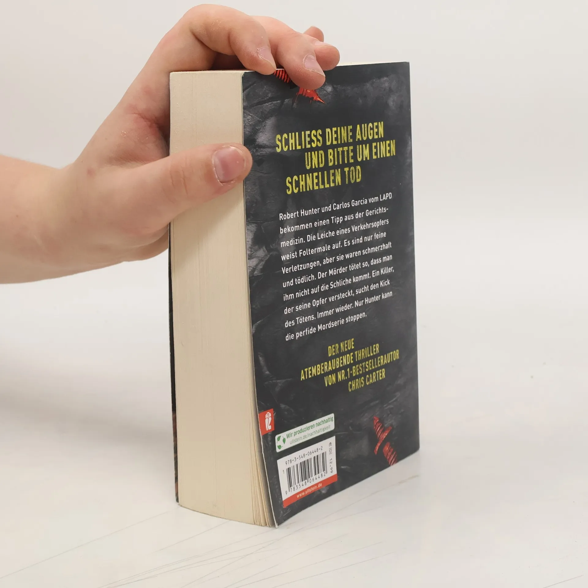 Schließ deine Augen und bitte um einen schnellen Tod Bei der Autopsie eines Verkehrsopfers entdeckt Gerichtsmedizinerin Dr. Hove etwas Seltsames. Tödliche Wunden unter der Haut, die nicht vom Unfall stammen können. Sie ist auf das Werk eines Serienkillers gestoßen. Unbemerkt und mit enormer Expertise lässt er jeden seiner brutalen Morde wie ein zufälliges Unglück aussehen. Dr. Hove meldet ihren Verdacht Robert Hunter und Carlos Garcia vom LAPD Ultra Violent Crimes Unit. Die Detectives stehen vor einem Problem. Wie ermittelt man in einer Mordserie, wenn die Opfer nicht bekannt sind? Wie fängt man einen Killer, wenn es keinen Tatort gibt? Wie stellt man einen sadistischen Jäger, der ausgesprochen vorsichtig vorgeht? Wie hält man einen Unsichtbaren auf, dessen Existenz nicht zu beweisen ist? Der 13. Band der Nr.1-Bestsellerserie mit Profiler Robert Hunter Chris Carter hat jahrelang als Kriminalpsychologe für die Polizei in Los Angeles gearbeitet, das macht seine Bücher so einzigartig.