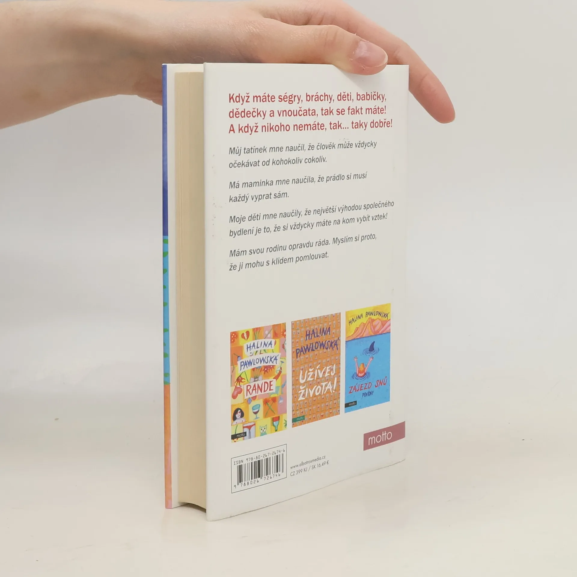 Oblíbená spisovatelka a scenáristka přichází s knihou humorných povídek ze života svého, ale i ostatních členů své široké rodiny. Můj tatínek mne naučil, že člověk může vždycky očekávat od kohokoliv cokoliv. Má maminka mne naučila, že prádlo si musí každý vyprat sám. Moje děti mne naučily, že největší výhodou společného bydlení je to, že si vždycky máte na kom vybít vztek! Mám svou rodinu opravdu ráda. Myslím si proto, že ji mohu s klidem pomlouvat. Nakladatelská anotace.