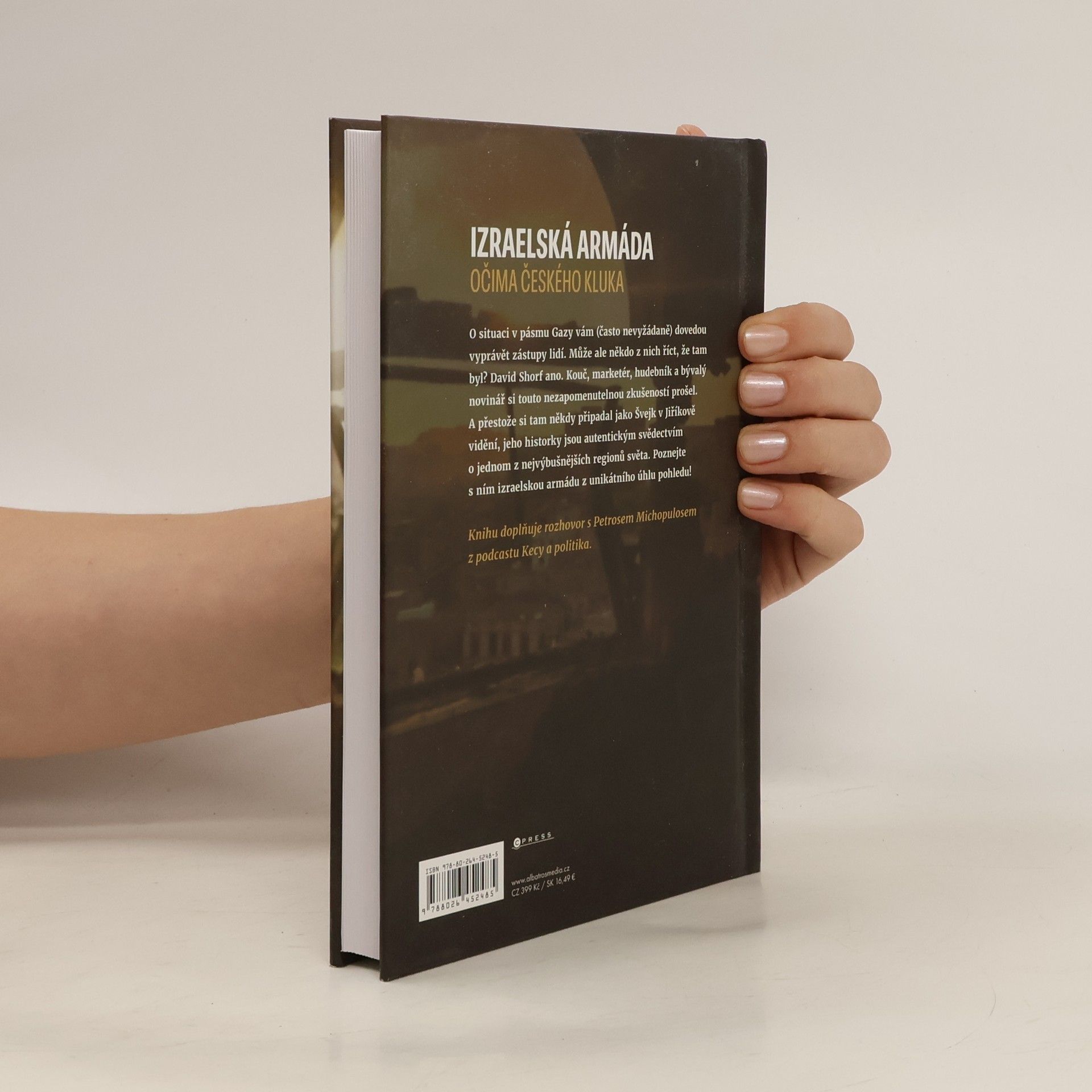 Historky z izraelské armády. Neuvěřitelné zážitky ze služby v Izraelských obranných silách. O situaci v pásmu Gazy vám (často nevyžádaně) dovedou vyprávět zástupy lidí. Může ale někdo z nich říct, že tam byl? David Shorf ano. Kouč, marketér, hudebník a bývalý novinář strávilv řadách proslulé izraelské armády tři roky. A přestože si tam někdy připadal jako Švejk v Jiříkově vidění, jeho historky jsou autentickým svědectvím o jednom z nejvýbušnějších regionů světa. Poznejte s ním izraelskou armádu z unikátního úhlu pohledu! Knihu doplňuje rozhovor s Petrosem Michopulosem z podcastu Kecy a Politika.