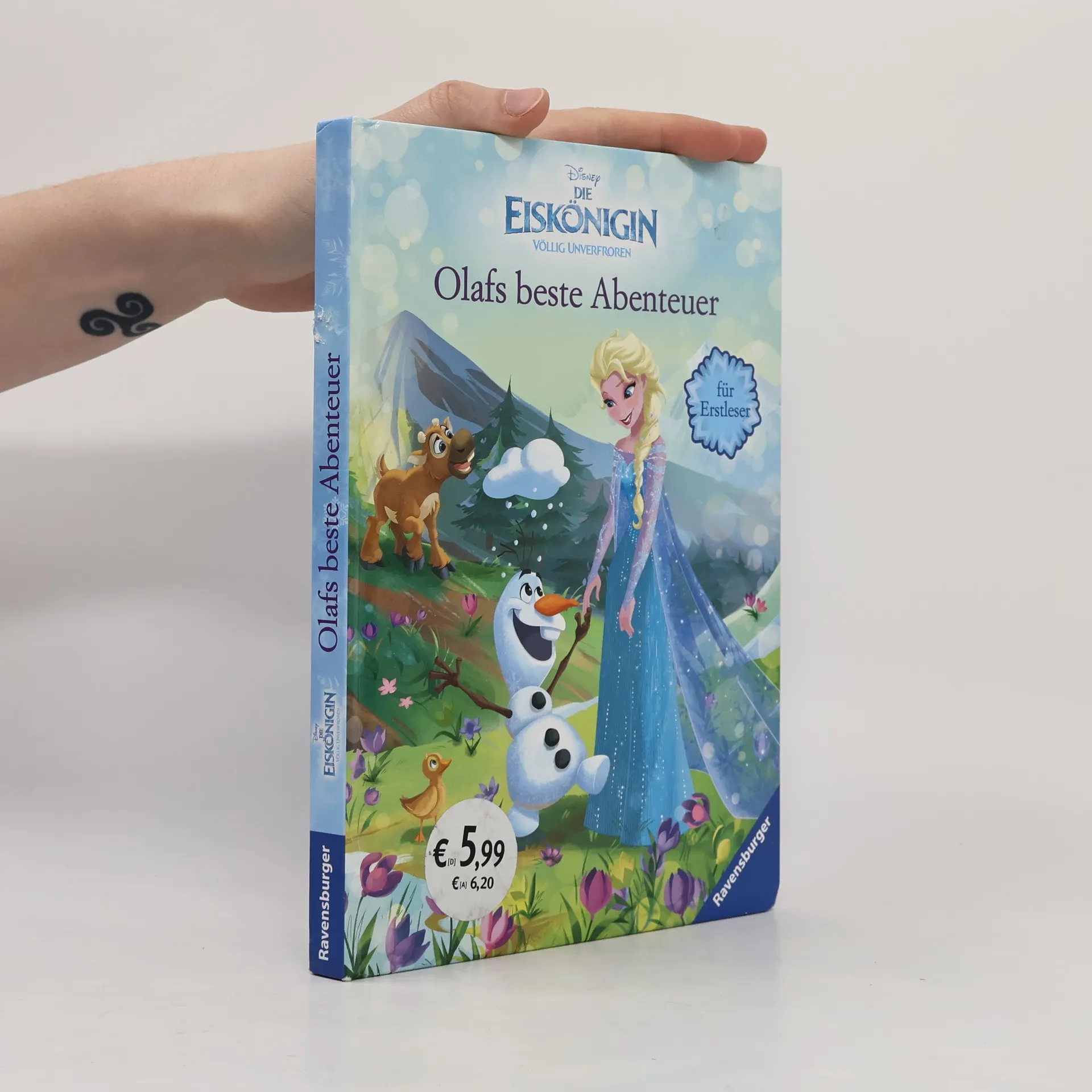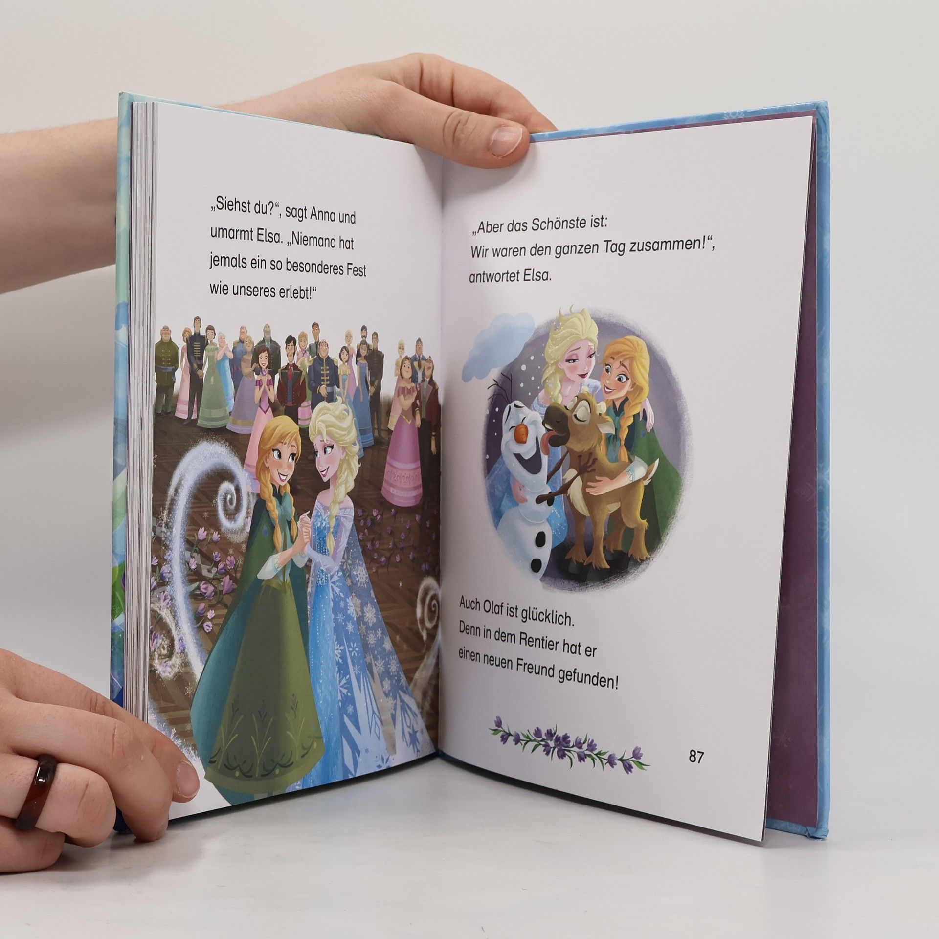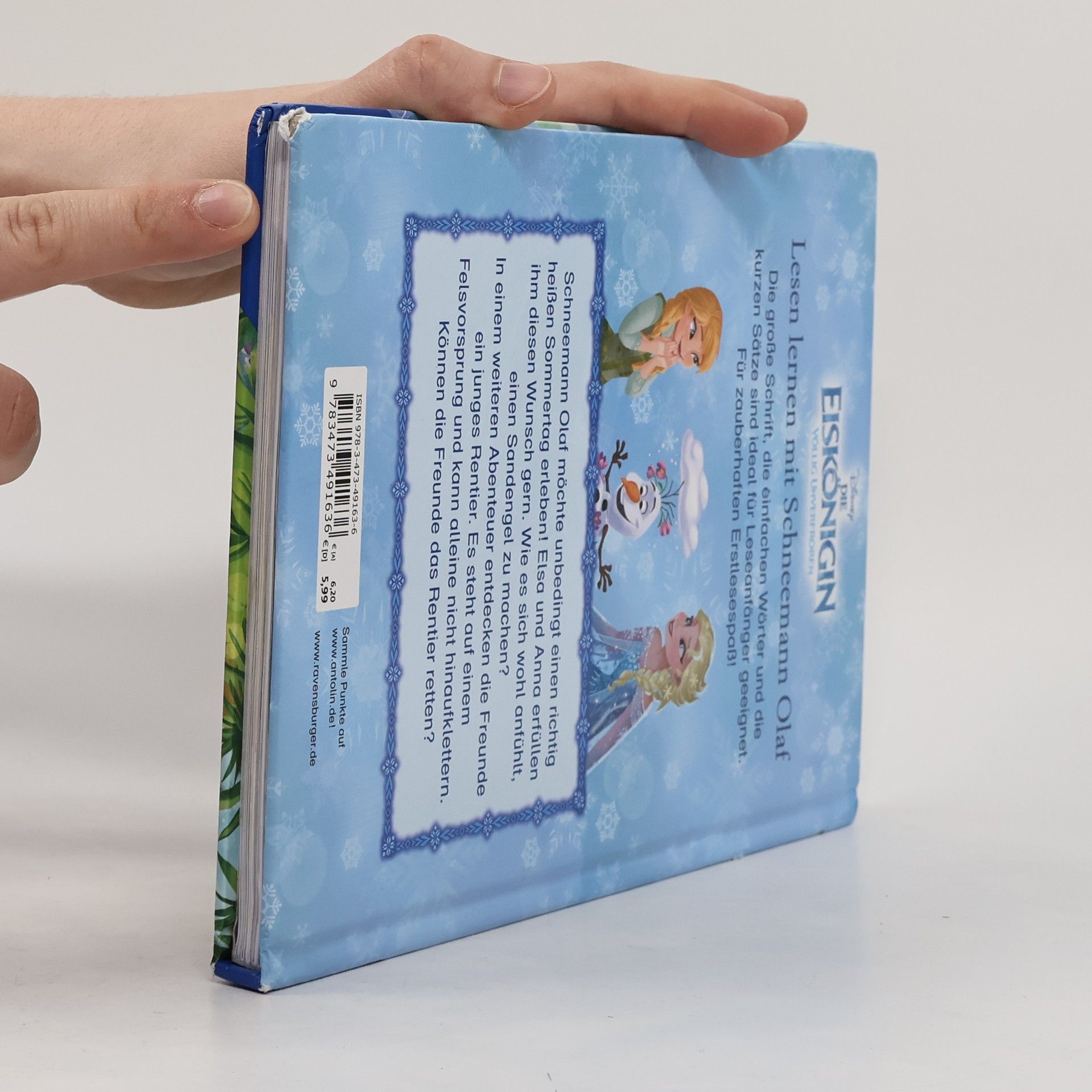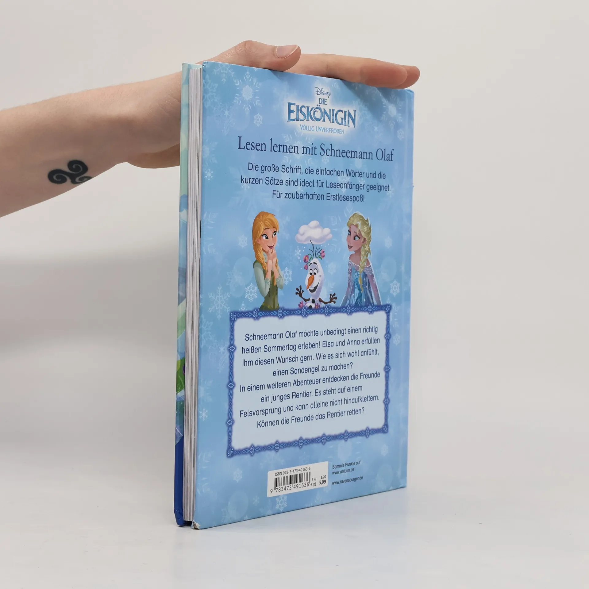 Schneemann Olaf möchte unbedingt einmal einen richtig heißen Sommertag erleben! Elsa und Anna erfüllen ihm diesen Wunsch gern. Wie es sich wohl anfühlt, einen Sandengel zu machen? In einem weiteren Abenteuer bereiten Elsa, Anna und Olaf ein großes Fest für den Abend vor. Um den Ballsaal noch schöner zu machen, suchen sie in den Bergen nach Blumen. Dort entdecken sie ein junges Rentier in Not! Ob sie es retten können und pünktlich zum Fest kommen? Zum Vor- und Selberlesen. Zwei magische Geschichten zu Disneys "Die Eiskönigin" in einem Band!Zum Vor- und Selberlesen: Die große Schrift, die einfachen Wörter und kurzen Sätze sind ideal für Leseanfänger. So macht lesen lernen Spaß!Schneemann Olafs größter Wunsch geht in Erfüllung! Es ist der heißeste Tag des Jahres und Elsa und Anna machen einen Ausflug mit ihm. Wie es sich wohl anfühlt, einen Sandengel zu machen? Olaf erlebt sein wohl schönstes Abenteuer – fernab von Eis und Schnee.In einem weiteren Abenteuer entdecken die Freunde ein junges Rentier in Not. Es steht auf einem Felsvorsprung und kann alleine nicht heraufklettern. Können die Freunde das Rentier retten?