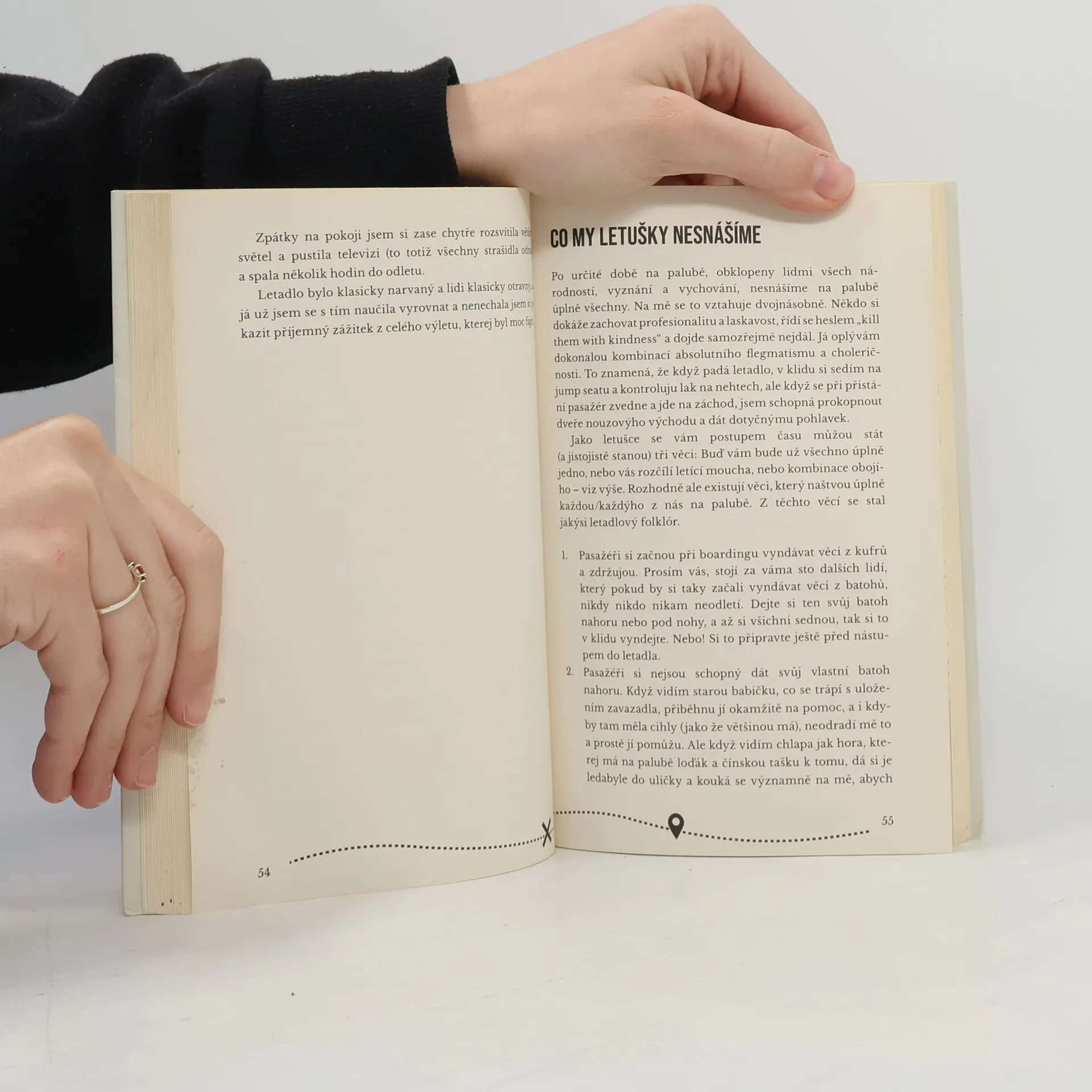Zajímavé zážitky, vcelku dobře popsané. Kniha je o tom, co mladá letuška ve svých začátcích prožívá. Zážitky dobré i ty horší, změny časových pásem, zkušenosti s pasažery i to, s čím vším se v dalekých zemích potkala a co ji překvapilo.