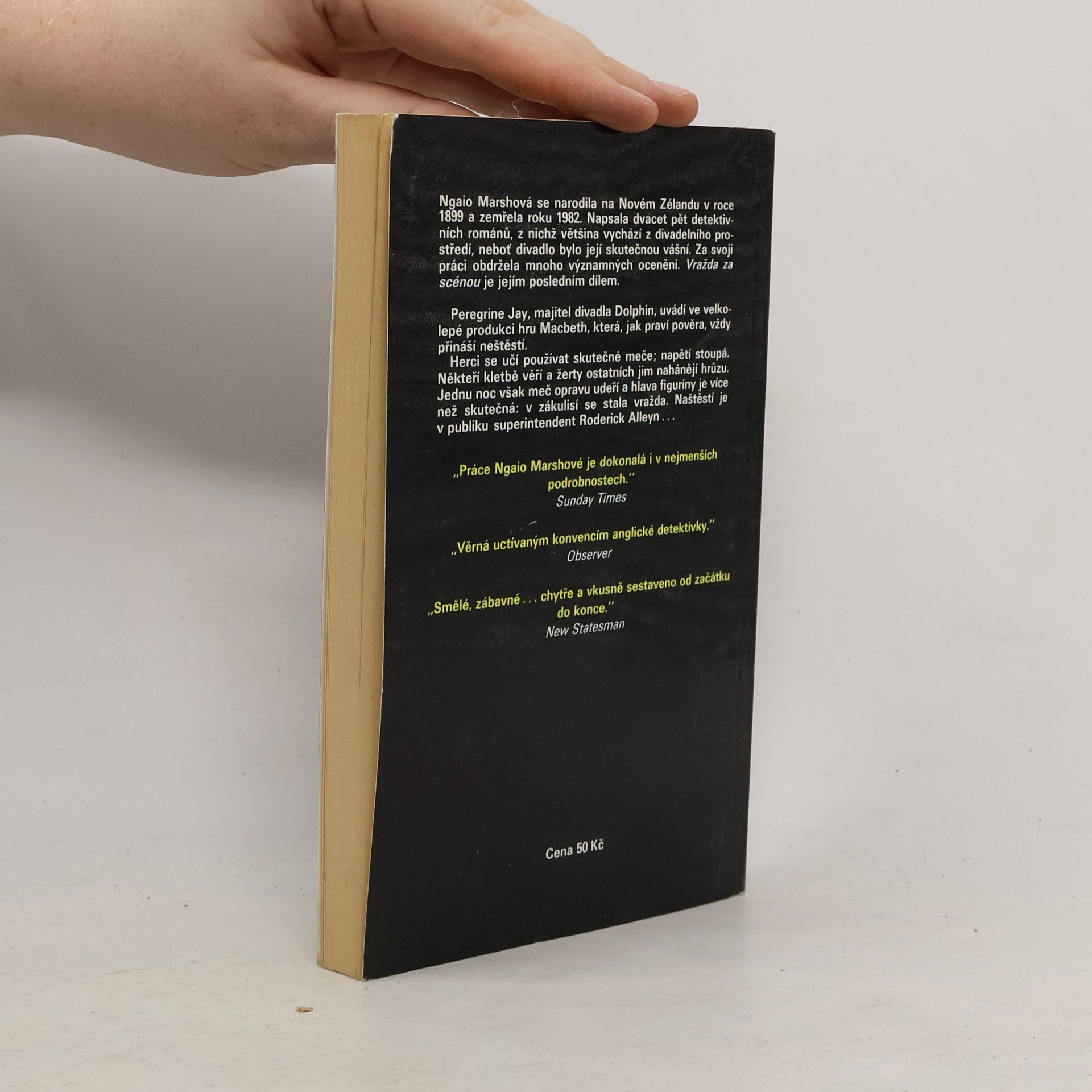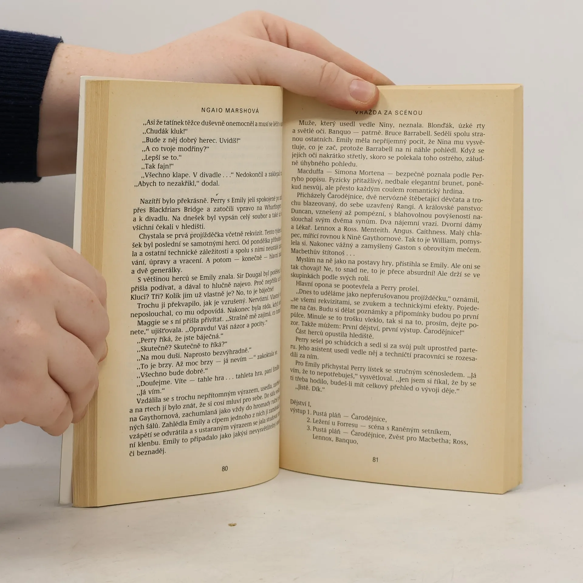 Detektivní román z divadelního prostředí renomované londýnské scény. Když majitel divadla Dolphin Peregrine Jay uvádí ve velkolepé produkci hru Macbeth, nic nedbá na divadelní pověru, že hra vždy přinese neštěstí a smrt. Kletba se však vyplní vraždou v zákulisí. Naštěstí je v publikusuperintendent Roderick Alleyn.
