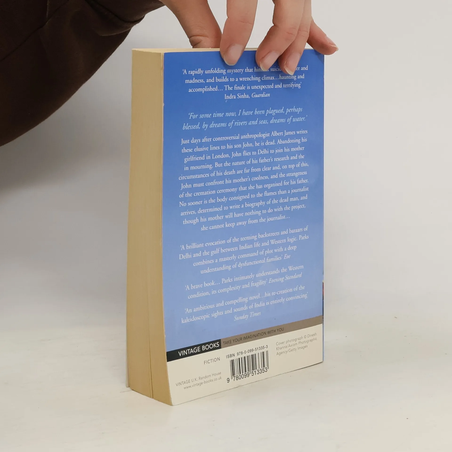'For some time now, I have been plagued, perhaps blessed, by dreams of rivers and seas, dreams of water.'Just days after Albert James writes these lines to his son John, in London, he is dead. Abandoning a pretty girlfriend and the lab where he is completing his PhD, John flies to Delhi to join his mother in mourning. A brilliant and controversial anthropologist, the nature of Albert James's research, and the circumstances of his death, are far from clear. On top of this, John must confront his mother's coolness, and the strangeness of the cremation ceremony that she has organised for his father. No sooner is the body consigned to the flames than a journalist arrives, determined to write a biography of the dead man. The widow will have nothing to do with the project, yet seems incapable of keeping away from the journalist.In Tim Parks's masterly new novel, India, with its vast strangeness, the density and intensity of its street life, its indifference to all distinctions between the religious and the secular, is a constant source of distraction to these westerners in search of clarity and identity. To John, the enigma of his father's dreams of rivers and seas appears to be one with the greater mystery of the country.