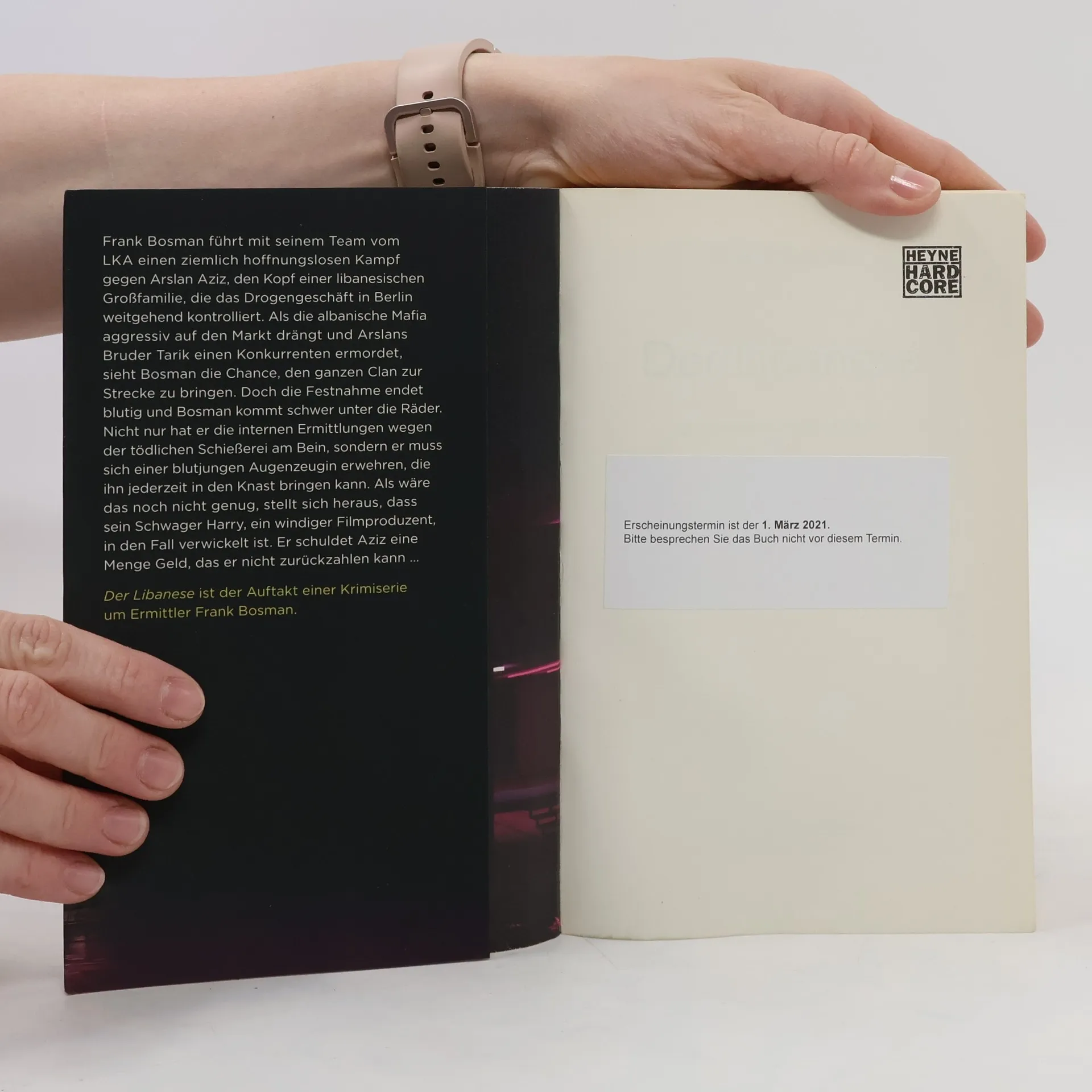 Frank Bosman führt mit seinem Team vom LKA einen ziemlich hoffnungslosen Kampf gegen Arslan Aziz, den Kopf einer libanesischen Großfamilie, die das Drogengeschäft in Berlin weitgehend kontrolliert. Als die albanische Mafia aggressiv auf den Markt drängt und Arslans Bruder Tarik einen Konkurrenten ermordet, sieht Bosman die Chance, den ganzen Clan zur Strecke zu bringen. Doch die Festnahme endet blutig, und Bosman kommt schwer unter die Räder. Nicht nur hat er die internen Ermittlungen wegen der tödlichen Schießerei am Bein, sondern er muss sich einer blutjungen Augenzeugin erwehren, die ihn jederzeit in den Knast bringen kann. Als wäre das noch nicht genug, stellt sich heraus, dass sein Schwager Harry, ein windiger Filmproduzent, in den Fall verwickelt ist. Er schuldet Aziz eine Menge Geld, das er nicht zurückzahlen kann ... Der Libanese ist der Auftakt einer Krimiserie um Ermittler Frank Bosman.