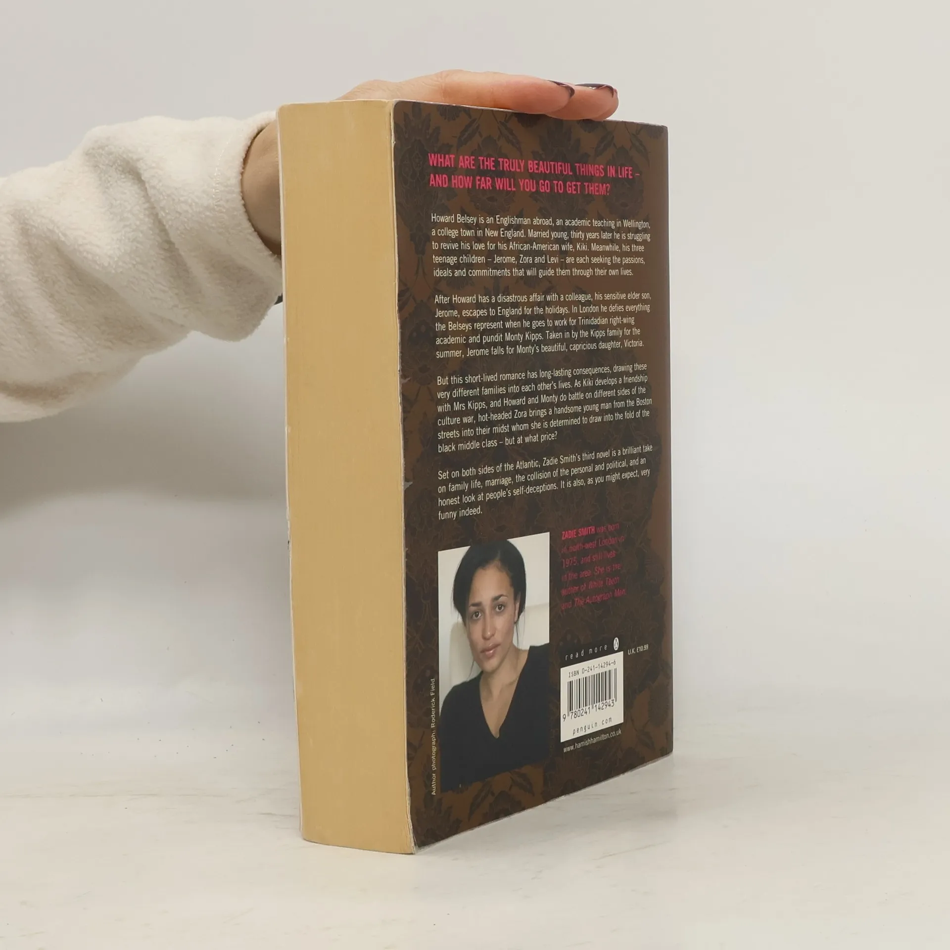Howard Belsey, a Rembrandt scholar who doesn't like Rembrandt, is an Englishman abroad and a long - suffering Professor at Wellington College. He has been married for thirty years to Kiki, an American woman who no longer resembles the sexy activist she once was. Their three children passionately pursue their own paths, and faced with the oppressive enthusiasms of his children, Howard feels that the first two acts of his life are over and he has no clear plans for the finale. Then Jerome, Howard's oldest son, falls for Victoria, the stunning daughter of the right - wing icon Monty Kipps. Increasingly, the two families find themselves thrown together in a beautiful corner of America, enacting a cultural and personal war against the background of real wars that they barely register . . .