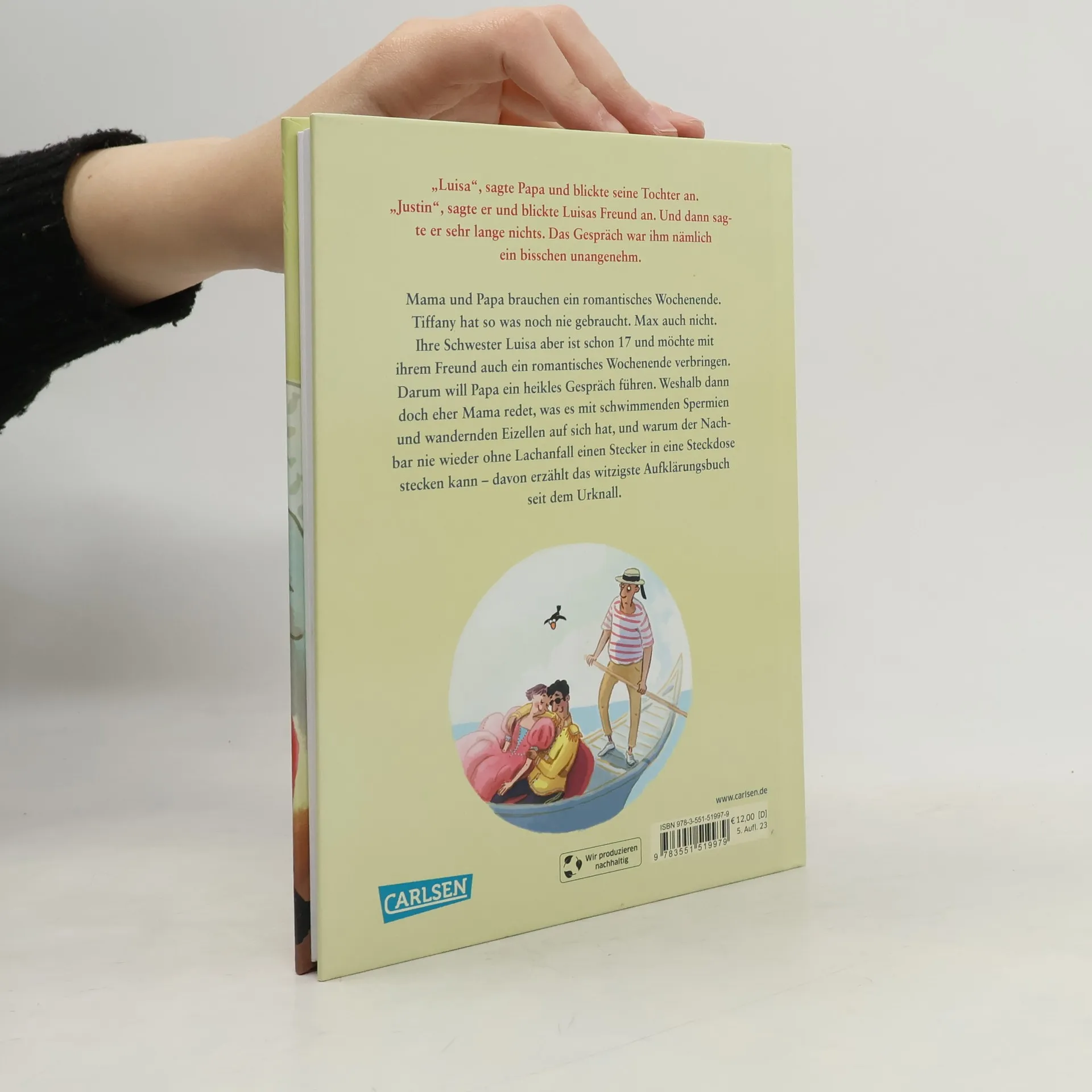 Das witzigste Aufklärungsbuch seit dem Urknall! Ausgzeichnet: Die besten 7 für junge Leser*innen (September 2021) Mama und Papa wollen wegfahren, und zwar unverschämterweise nur zu zweit. Papa sagt, sie würden mal wieder ein romantisches Wochenende brauchen. Tiffany findet das ziemlich komisch, sie hat so was noch nie gebraucht. Max auch nicht – und der ist schon 12. Ihre große Schwester sieht das ein bisschen anders. Luisa ist nämlich schon 17 und möchte mit ihrem Freund Justin ebenfalls ein romantisches Wochenende verbringen. Und darum will Papa ein heikles Gespräch führen. Weshalb dann doch eher Mama redet, wie das mit Oma und Opa in den 60ern war, was es mit schwimmenden Spermien und wandernden Eizellen auf sich hat und warum der Nachbar jetzt nie wieder ohne Lachanfall einen Stecker in eine Steckdose stecken kann – davon erzählt das Buch. Zum Mitlachen und Lernen Marc-Uwe Kling erzählt, wie es Papa eben so gar nicht schafft, mit seinen Kindern unverkrampft über Sex zu sprechen. Und ganz nebenbei gelingt ihm dadurch, woran Papa scheitert – nämlich unterhaltsam und locker ein Thema zu vermitteln, das uns alle etwas angeht. Mit genialen Bildern von Astrid Henn