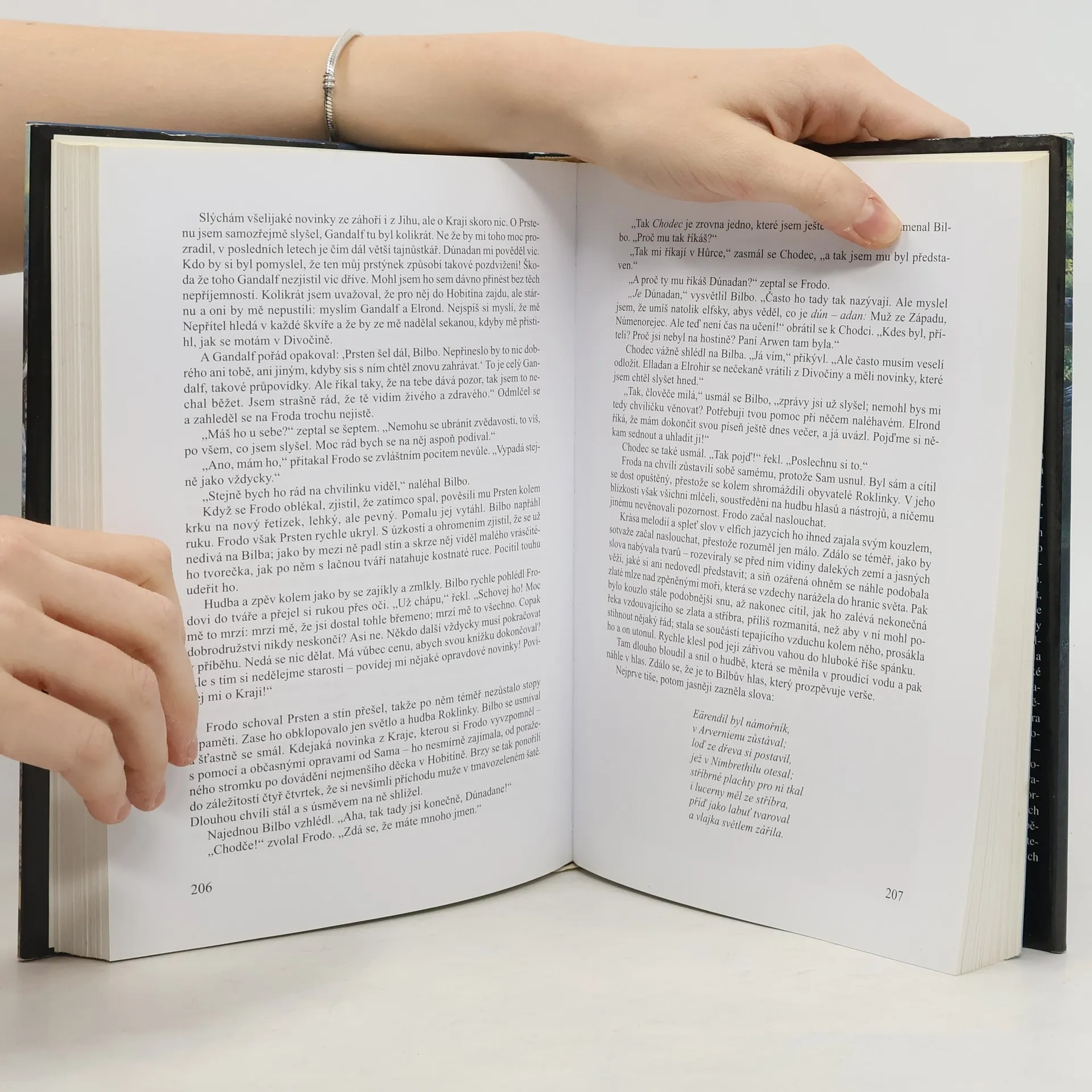 Společenstvo prstenu je prvním dílem spletité ságy, v níž hlavní roli hraje kouzelný prsten, jehož přičiněním se hrdinové dostávají do odvěkého sporu mezi silami dobra a zla. Příběh se odehrává v bájné Středozemi a volně navazuje na děj knihy Hobit, na jijíchš stránkách Tolkien poprvé rozezněl temné i jásavé struny své imaginace. Společně se členy Družiny Prstenu prožijí čtenáři nezapomenutelná dobrodružství, stanou se svědky nelítostných bitev, navštíví kouzelné kraje a seznámí se s elfy, trpaslíky, obry, draky a dalšími pohádkovými bytostmi — především však s hobity a jejich ochráncem, moudrým čarodějem Gandalfem…... celý text