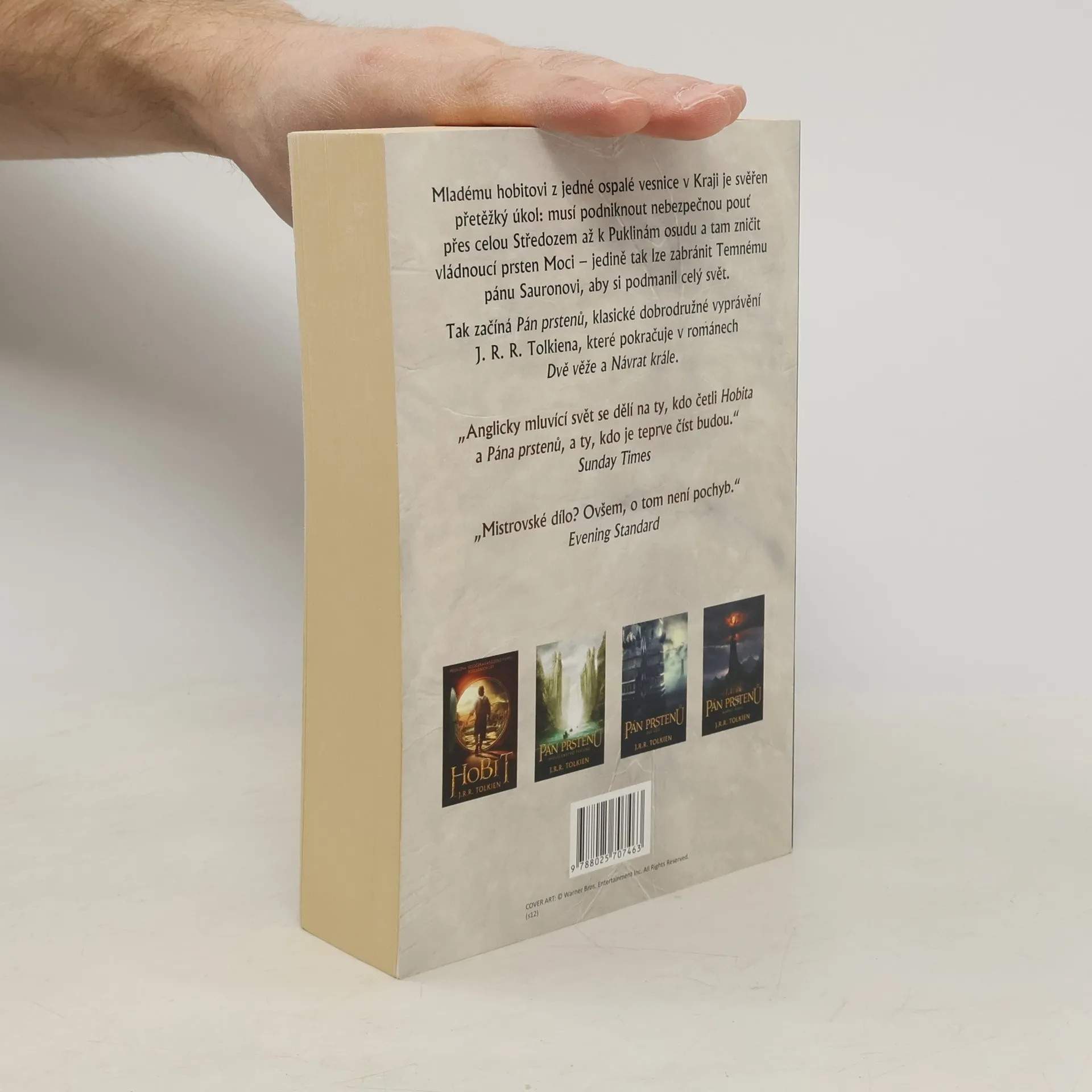Mladému hobitovi z jedné ospalé vesnice v Kraji je svěřen přetěžký úkol: musí podniknout nebezpečnou pouť přes celou Středozem až k Puklinám osudu a tam zničit vládnoucí prsten Moci – jedině tak lze zabránit Temnému pánu Sauronovi, aby si podmanil celý svět. Tak začíná Pán prstenů, klasické dobrodružné vyprávění J. R. R. Tolkiena, které pokračuje v románech Dvě věže a Návrat krále.