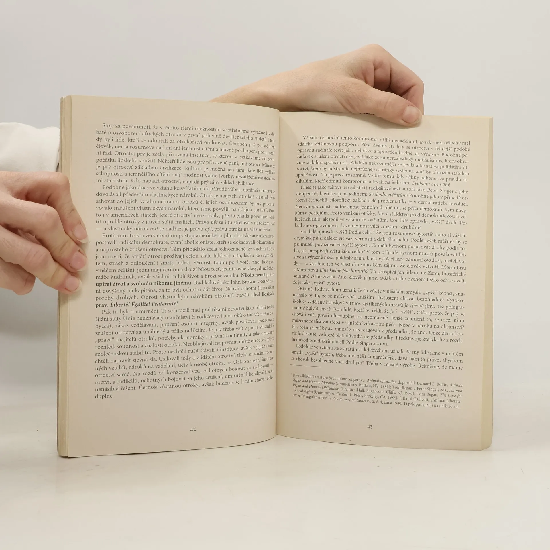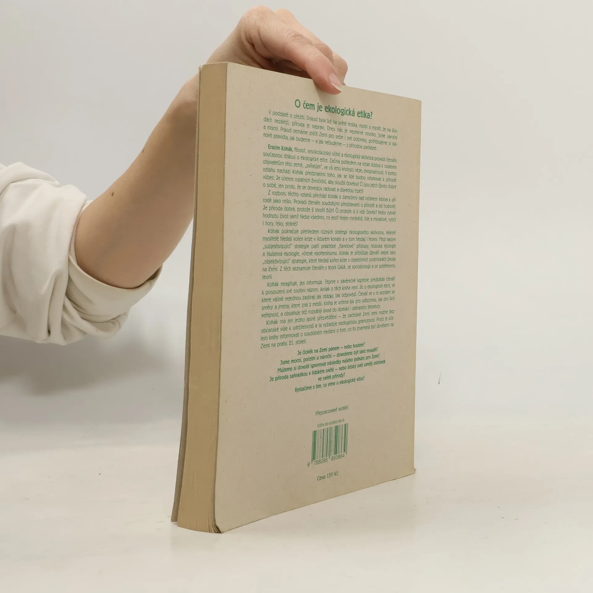 Autor (filosof, vysokoškolský učitel a ekologický aktivista) provádí čtenáře současnou diskusí o ekologické etice. Začíná pohledem na vztah lidstva k ostatním obyvatelům této země, "zvířatům", a od jeho rozboru přechází k zamyšlení nad vztahem lidstva k přírodě jako celku. Provádíčtenáře soudobými představami o přírodě a její hodnotě, poté pokračuje přehledem různých strategií ekologického aktivismu, a to jak "subjektivizujících", tak "objektivizujících". Druhé přepracované vydání.