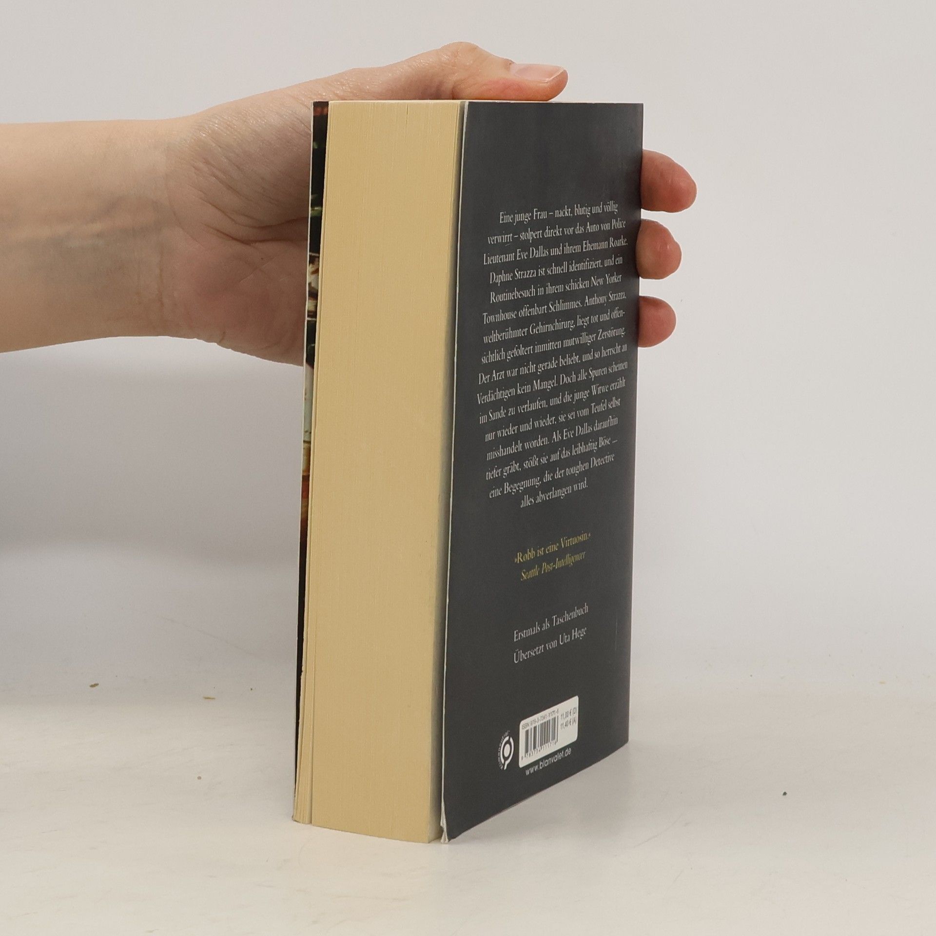 Der neue Pageturner aus der Erfolgsserie von J. D. Robb! Eine junge Frau – nackt, blutig und völlig verwirrt – stolpert direkt vor das Auto von Police Lieutenant Eve Dallas und ihrem Ehemann Roarke. Daphne Strazza ist schnell identifiziert, und ein Routinebesuch in ihrem schicken New Yorker Townhouse offenbart Schlimmes. Anthony Strazza, weltberühmter Gehirnchirurg, liegt tot und offensichtlich gefoltert inmitten mutwilliger Zerstörung. Der Arzt war nicht gerade beliebt, und so herrscht an Verdächtigen kein Mangel. Doch alle Spuren scheinen im Sande zu verlaufen, und die junge Witwe erzählt nur wieder und wieder, sie sei vom Teufel selbst misshandelt worden. Als Eve Dallas daraufhin tiefer gräbt, stößt sie auf das leibhaftig Böse .... eine Begegnung, die der toughen Detective alles abverlangen wird.