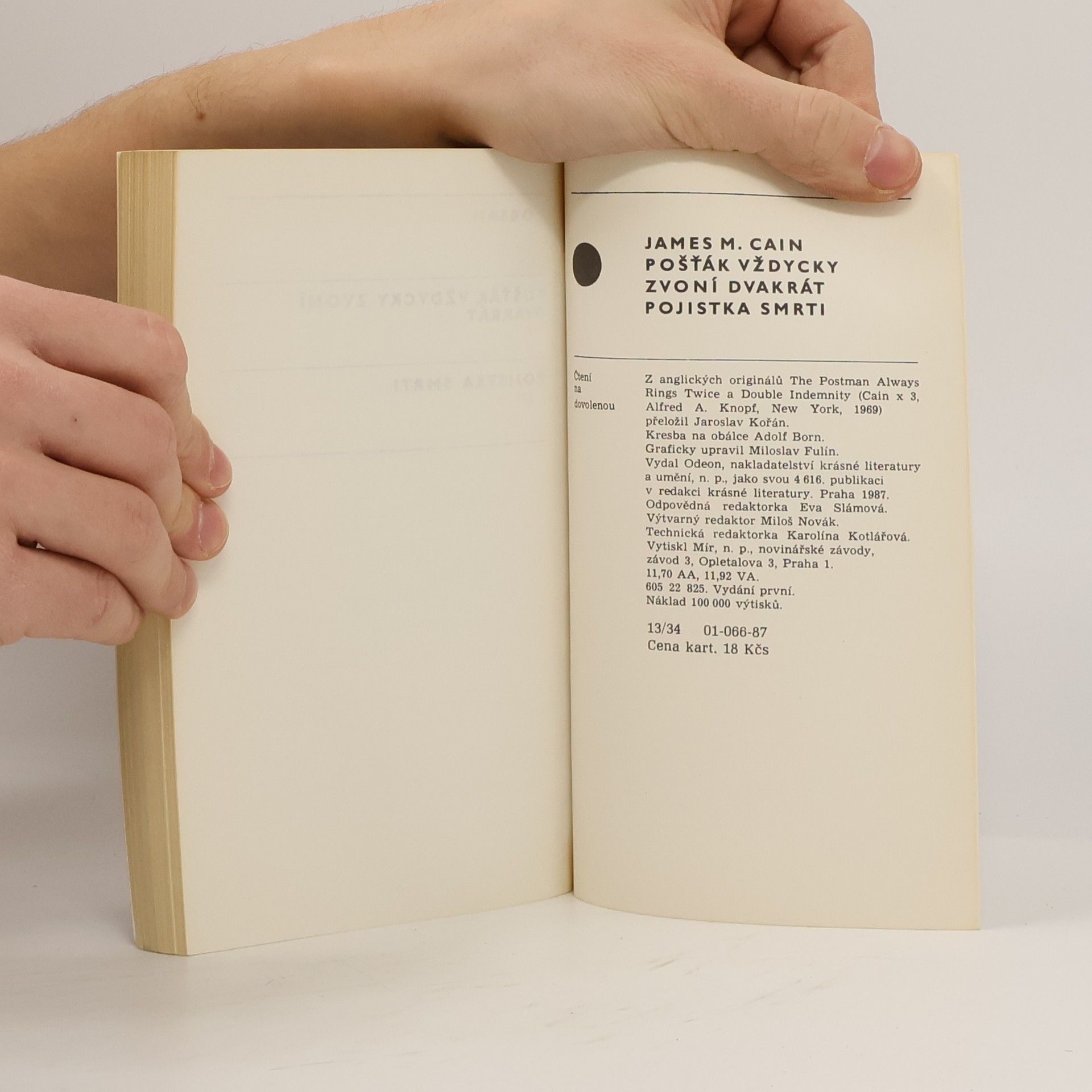 Pošťák vždycky zvoní dvakrát. Pojistka smrti, Jaroslav Kořán, James Mallahan Cain