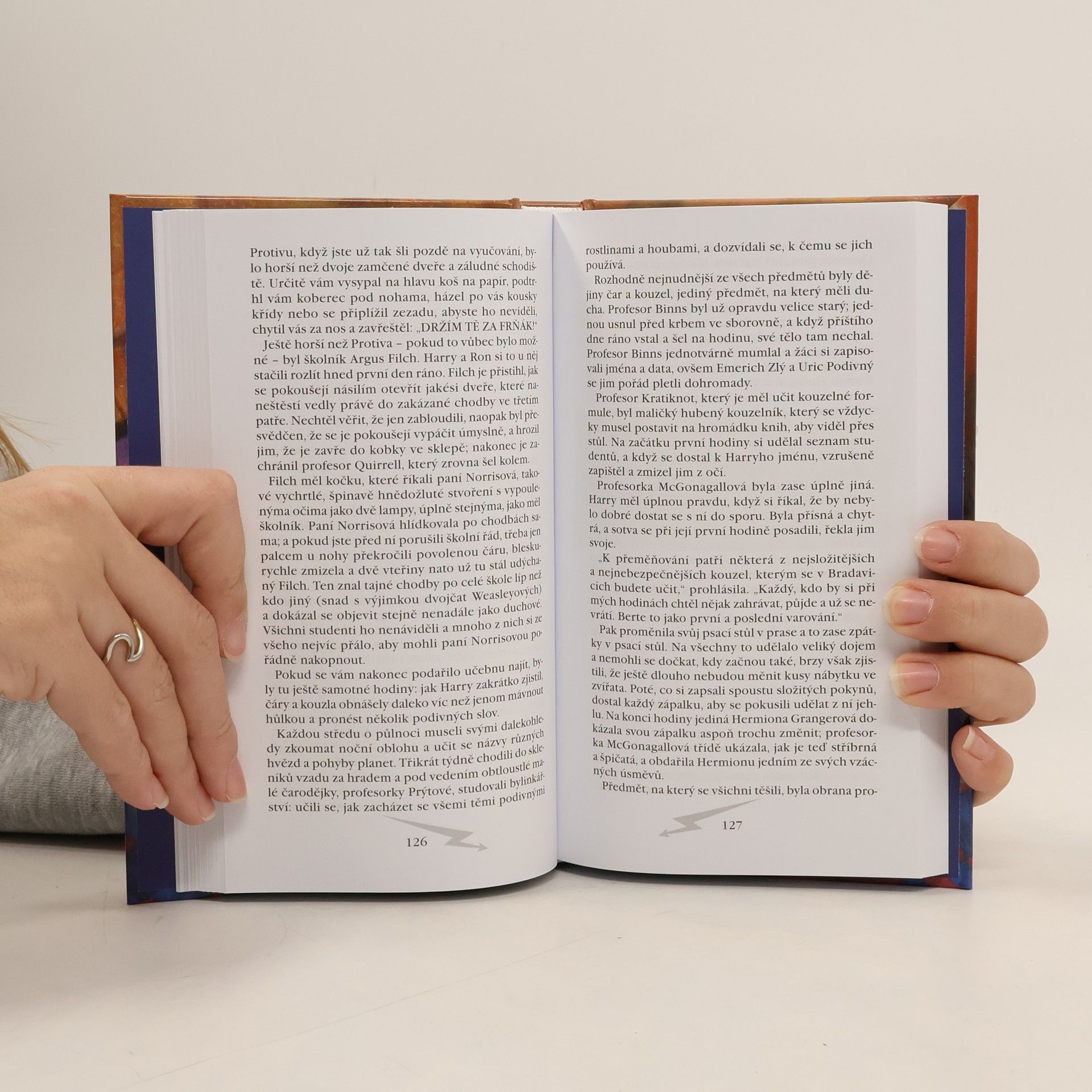 Vzrušující chvíle prožije čtenář s jedenáctiletým Harrym a jeho spolužáky v kouzelnické škole v Bradavicích. Do svých jedenácti let žije Harry v rodině nevlídných, kouzlům zcela vzdálených příbuzných. Netuší, jak se k nim dostal a kdo byli jeho rodiče. Ale pak se začnou objevovat podivní lidé, tajemné dopisy... Harry je nečekaně pozván do úplně jiného světa, do školy, kterou mu bude mnohý čtenář závidět - i když se v ní hemží duchové, obrazy vystupují ze svých rámů, občas se objeví nějaký ten troll nebo tříhlavý pes Chloupek a oblíbený famfrpál taky není zrovna bezpečná hra. Navíc je třeba zachránit nejen záhadný balíček, ale i čest a slávu Nebelvíru - a to už za trochu toho strachu a rizika určitě stojí.