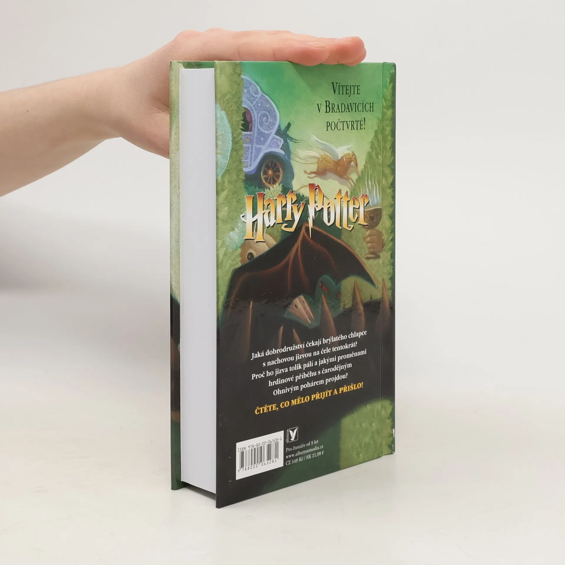 Čtvrtý rok v Bradavicích! Čtvrtý školní rok v Bradavicích není o nic méně napínavější a divočejší než ty předchozí. Ještě před jeho začátkem se zapálený fanoušek Harry zúčastní spolu s Weasleyovými mistrovství světa ve famfrpálu, v jehož závěru se mu na obloze objeví znamení zla. Harrymu navíc ještě vstoupí do života krásná Cho Changová a on se poprvé zamiluje.