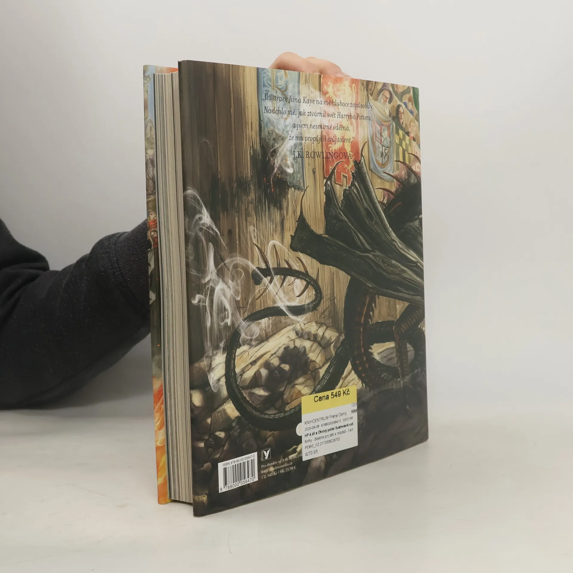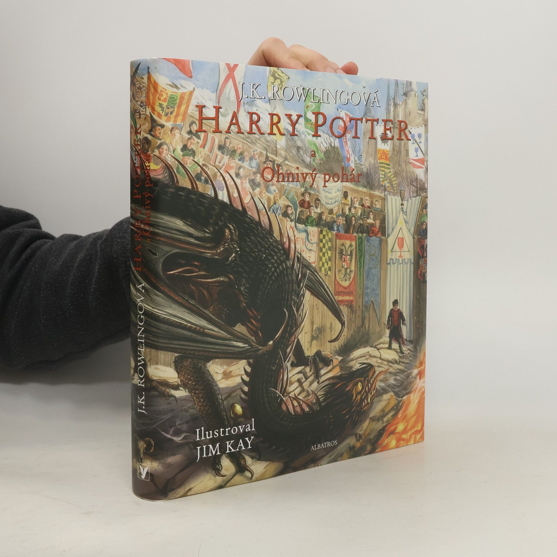 Čtvrté dobrodružství Harryho Pottera v ilustracích Jima Kaye! V Bradavicích se bude konat Turnaj tří kouzelníků. Zúčastnit se ho smí jen studenti, kterým už bylo sedmnáct let, a tak Harry Potter zatím alespoň sní o tom, že turnaj jednou vyhraje. Jenže když o Halloweenu Ohnivý pohár vyřkne své rozhodnutí, Harry s úžasem zjistí, že je mezi vybranými. Čekají ho smrtící úkoly, draci a temní čarodějové, ale s pomocí svých nejlepších přátel Rona a Hermiony to Harry možná… přežije.