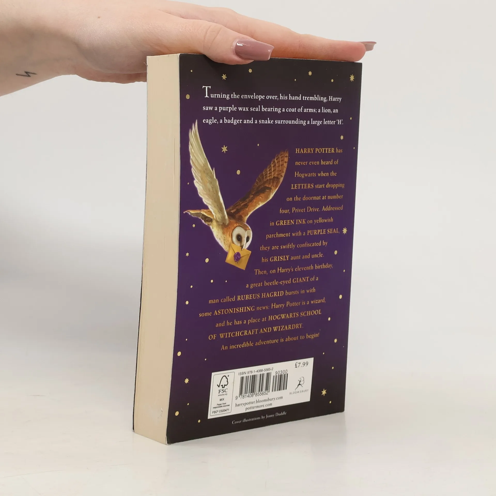 Harry Potter has never even heard of Hogwarts when the letters start dropping on the doormat at number four, Privet Drive. Addressed in green ink on yellowish parchment with a purple seal, they are swiftly confiscated by his grisly aunt and uncle. Then, on Harry's eleventh birthday, a great beetle-eyed giant of a man called Rubeus Hagrid bursts in with some astonishing news: Harry Potter is a wizard, and he has a place at Hogwarts School of Witchcraft and Wizardry. An incredible adventure is about to begin!These new editions of the classic and internationally bestselling, multi-award-winning series feature instantly pick-up-able new jackets by Jonny Duddle, with huge child appeal, to bring Harry Potter to the next generation of readers. It's time to PASS THE MAGIC ON .