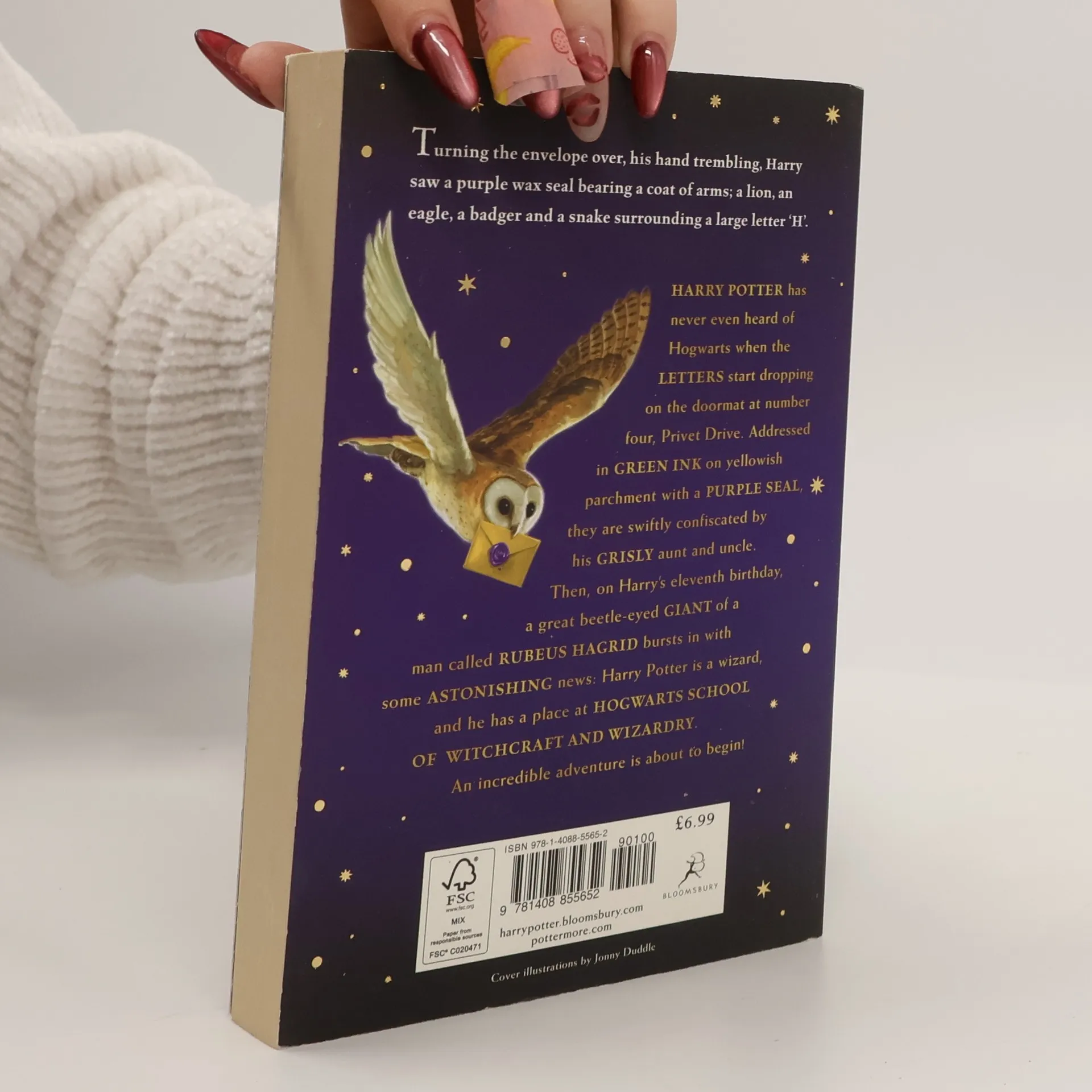Harry Potter has never even heard of Hogwarts when the letters start dropping on the doormat at number four, Privet Drive. Addressed in green ink on yellowish parchment with a purple seal, they are swiftly confiscated by his grisly aunt and uncle. Then, on Harry's eleventh birthday, a great beetle-eyed giant of a man called Rubeus Hagrid bursts in with some astonishing news: Harry Potter is a wizard, and he has a place at Hogwarts School of Witchcraft and Wizardry. An incredible adventure is about to begin!These new editions of the classic and internationally bestselling, multi-award-winning series feature instantly pick-up-able new jackets by Jonny Duddle, with huge child appeal, to bring Harry Potter to the next generation of readers. It's time to PASS THE MAGIC ON .