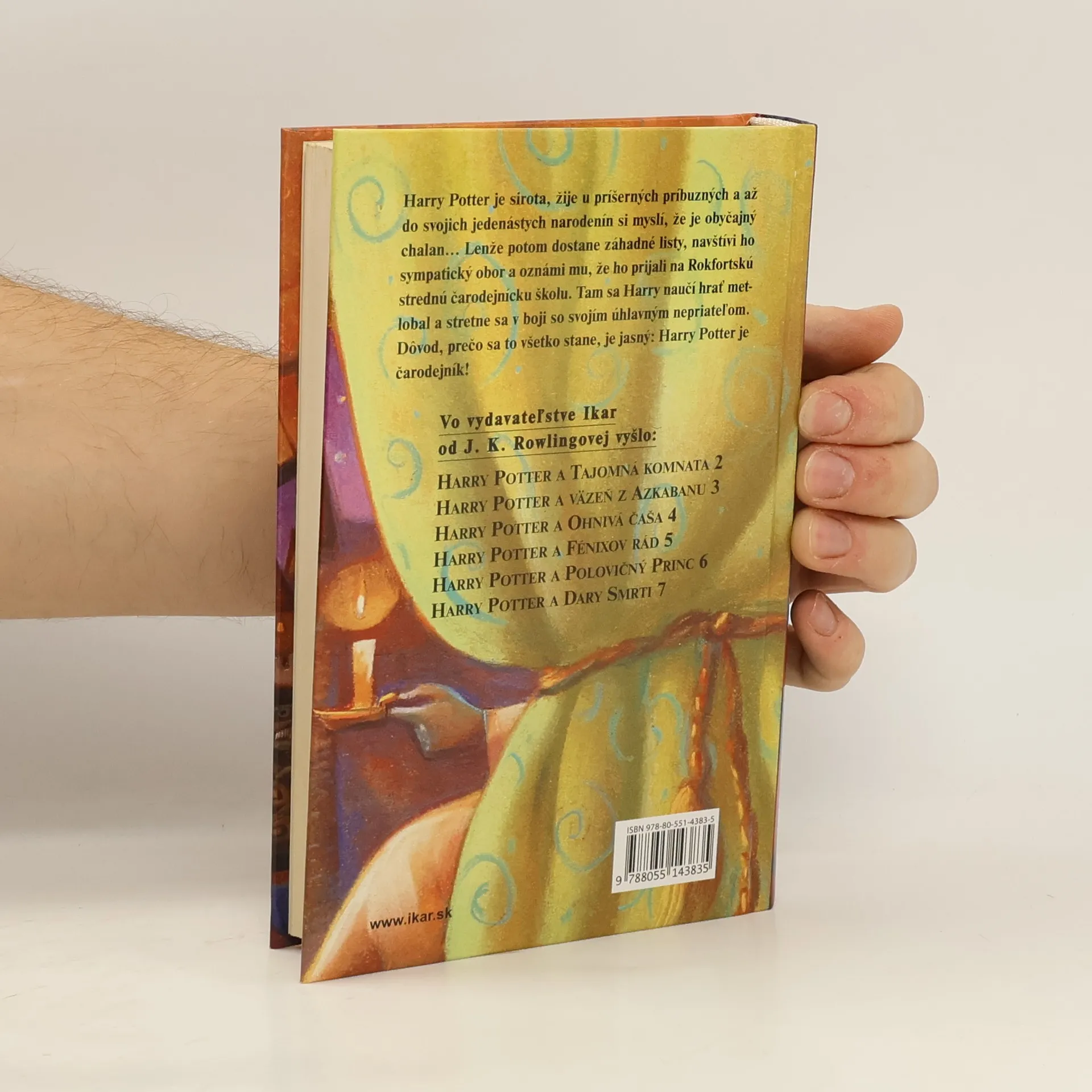 Harry Potter je sirota, žije u príšerných príbuzných a až do svojich jedenástych narodenín si myslí, že je obyčajný chalan... Lenže potom dostane záhadné listy, navštívi ho sympatický obor a oznámi mu, že ho prijali na Rokfortskú strednú čarodejnícku školu. Tam sa Harry naučí hrať metlobal a stretne sa v boji so svojím úhlavným nepriateľom. Dôvod, prečo sa to všetko stane, je jasný: Harry Potter je čarodejník! Verše prebásnil Jozef Pavlovič.
