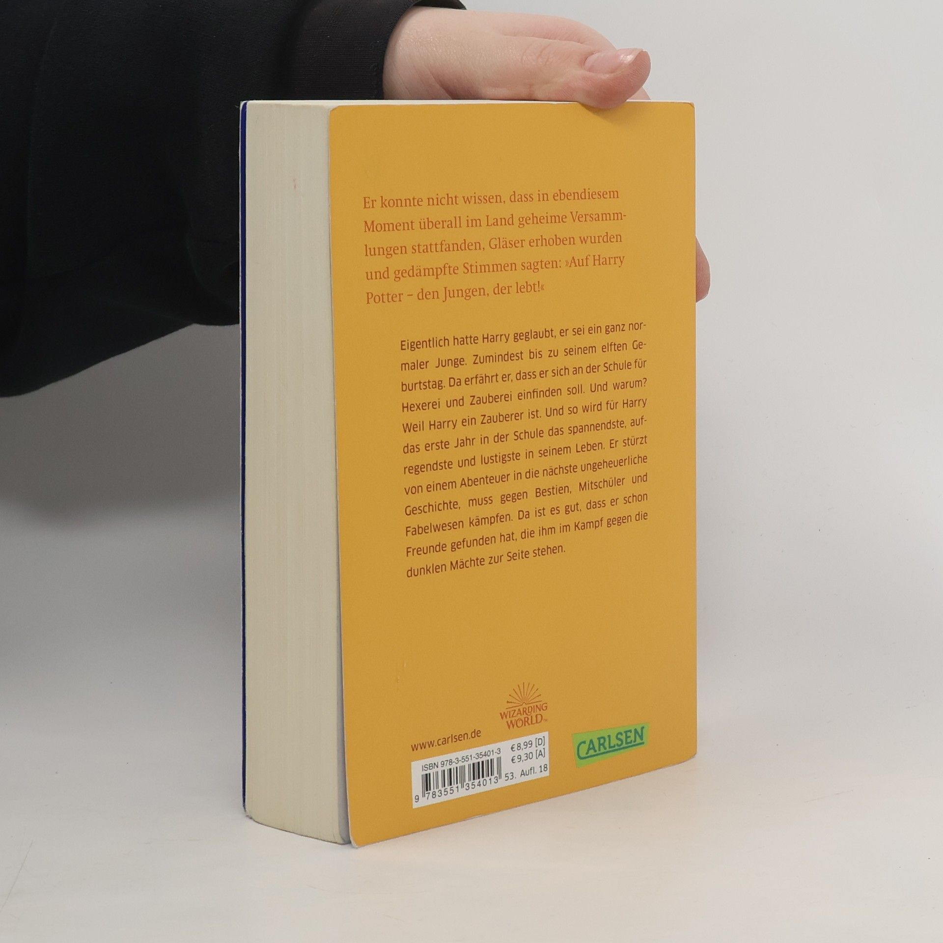 Bis zu seinem elften Geburtstag glaubt Harry, er sei ein ganz normaler Junge. Doch dann erfährt er, dass er sich an der Schule für Hexerei und Zauberei einfinden soll – denn er ist ein Zauberer! In Hogwarts stürzt Harry von einem Abenteuer ins nächste und muss gegen Bestien, Mitschüler und Fabelwesen kämpfen. Da ist es gut, dass er schon Freunde gefunden hat, die ihm im Kampf gegen die dunklen Mächte zur Seite stehen. Dies ist der erste Band der international erfolgreichen Harry-Potter-Serie, die Generationen geprägt hat. Alle Bände der Serie: Harry Potter und der Stein der WeisenHarry Potter und die Kammer des SchreckensHarry Potter und der Gefangene von AskabanHarry Potter und der FeuerkelchHarry Potter und der Orden des PhönixHarry Potter und der HalbblutprinzHarry Potter und die Heiligtümer des Todes Die Harry-Potter-Serie ist abgeschlossen.