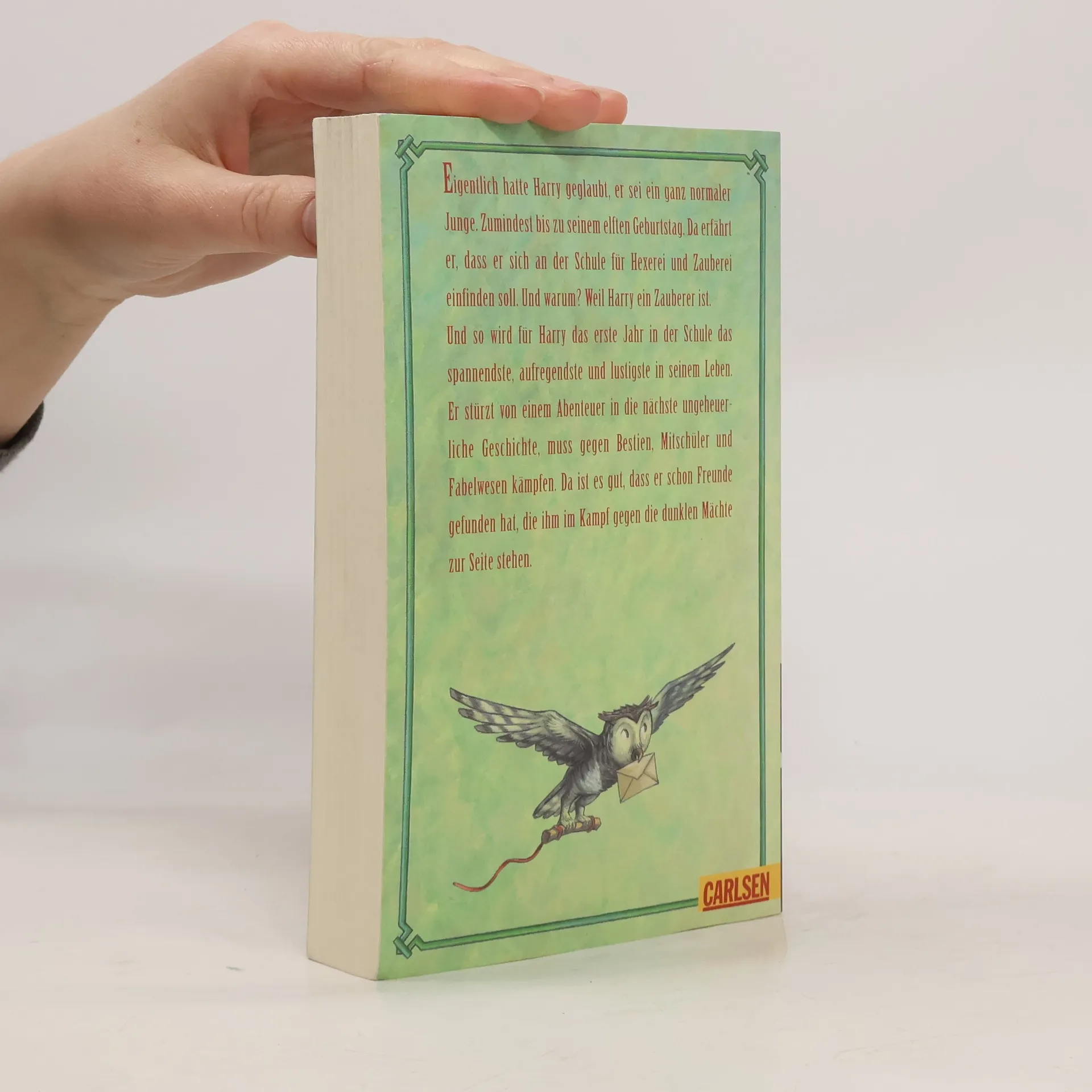 Bis zu seinem elften Geburtstag glaubt Harry, er sei ein ganz normaler Junge. Doch dann erfährt er, dass er sich an der Schule für Hexerei und Zauberei einfinden soll – denn er ist ein Zauberer! In Hogwarts stürzt Harry von einem Abenteuer ins nächste und muss gegen Bestien, Mitschüler und Fabelwesen kämpfen. Da ist es gut, dass er schon Freunde gefunden hat, die ihm im Kampf gegen die dunklen Mächte zur Seite stehen. Dies ist der erste Band der international erfolgreichen Harry-Potter-Serie, die Generationen geprägt hat. Alle Bände der Serie: Harry Potter und der Stein der WeisenHarry Potter und die Kammer des SchreckensHarry Potter und der Gefangene von AskabanHarry Potter und der FeuerkelchHarry Potter und der Orden des PhönixHarry Potter und der HalbblutprinzHarry Potter und die Heiligtümer des Todes Die Harry-Potter-Serie ist abgeschlossen.