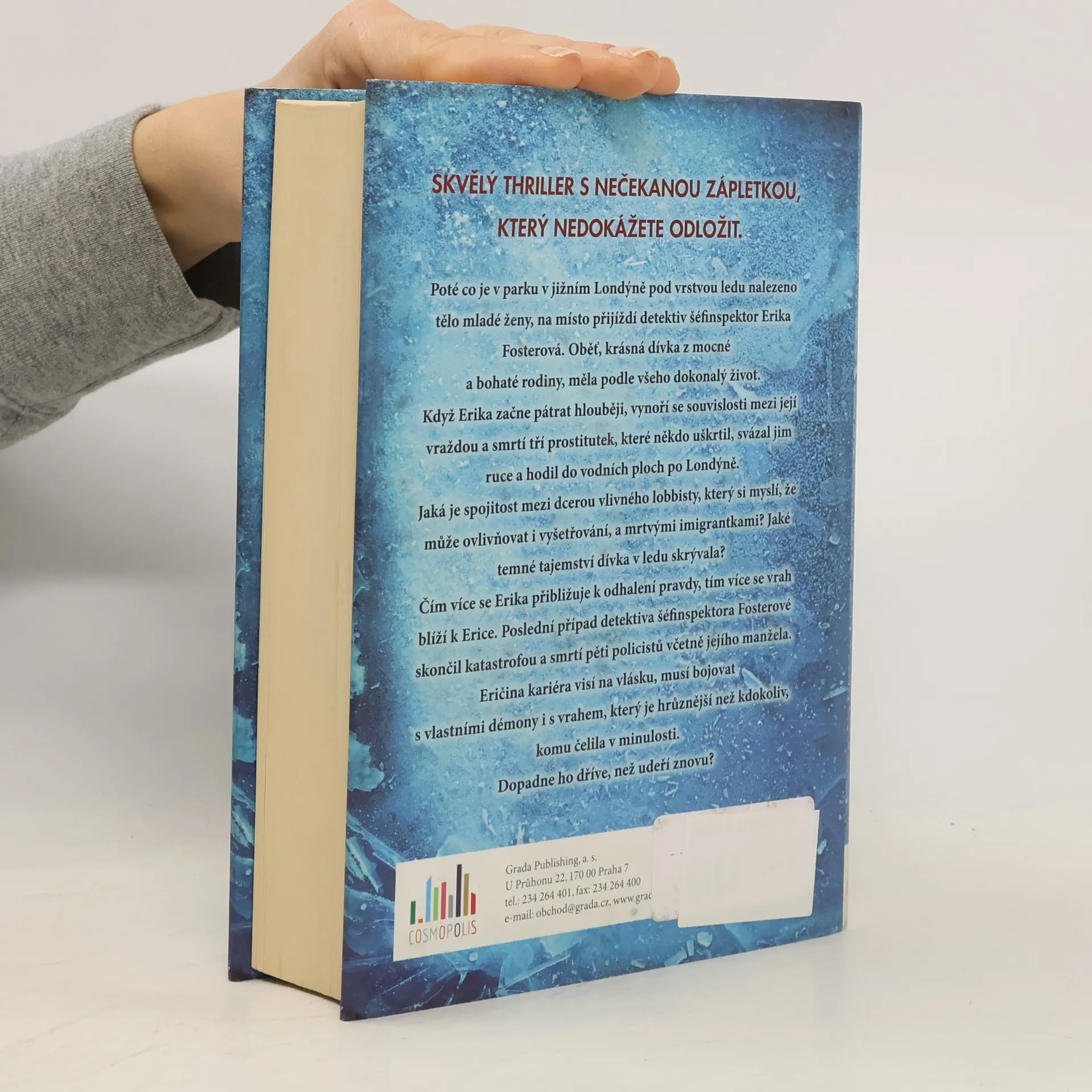 Poté co je v parku v jižním Londýně pod vrstvou ledu nalezeno tělo mladé ženy, na místo přijíždí detektiv šéfinspektor Erika Fosterová. Oběť, krásná dívka z mocné a bohaté rodiny, měla podle všeho dokonalý život. Když Erika začne pátrat hlouběji, vynoří se souvislosti mezi její vraždou a smrtí tří prostitutek, které někdo uškrtil, svázal jim ruce a hodil do vodních ploch po Londýně. Jaká je spojitost mezi dcerou vlivného lobbisty, který si myslí, že může ovlivňovat i vyšetřování, a mrtvými imigrantkami? Jaké temné tajemství dívka v ledu skrývala? Čím více se Erika přibližuje k odhalení pravdy, tím více se vrah blíží k Erice. Poslední případ detektiva šéfinspektora Fosterové skončil katastrofou a smrtí pěti policistů včetně jejího manžela. Eričina kariéra visí na vlásku, musí bojovat s vlastními démony i s vrahem, který je hrůznější než kdokoliv, komu čelila v minulosti. Dopadne ho dříve, než udeří znovu?