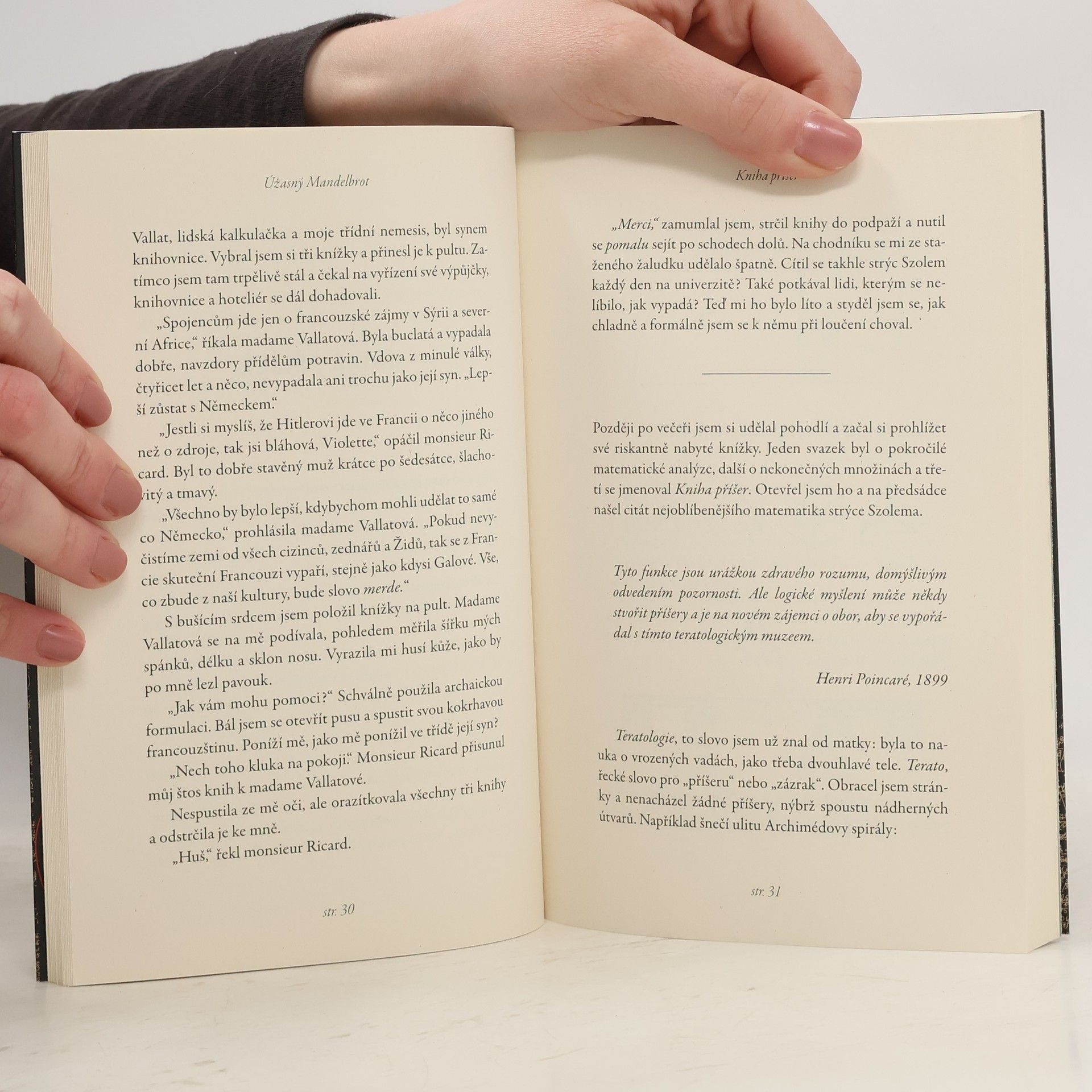 Logika někdy stvoří příšery. Příšery provází Benoîta Mandelbrota celý život. Svět jeho dětství ovládají reálné příšery, které vyvolal nástup Hitlera a rozmach Třetí říše. Benoît Mandelbrot z varšavského ghetta uprchl spolu s rodiči do Paříže. Pro židovského teenagera byl život v nacisty okupované Francii nesnesitelný v každém případě. Benoîtovi vše ještě více komplikují dvě věci - jeho nesporná genialita a ostych před lidmi. Jako každý, kdo vládne superschopnostmi, je tak trochu outsider. Mandelbrotovi utíkají do malého města na jihu, tají svou identitu a zoufale se pokouší splynout s francouzskými venkovany. Příběh Benoîta Mandelbrota se však ubírá jinou trajektorií než válkou zmítaná Evropa. Únik před krutostí světa nachází v jiných vesmírech a v tajných dimenzích. Při objevování neznámých divů je vtažen do nekonečných proměnných vzorců matematiky a magie. Avšak i zde, v jeho snovém světě, jej pronásledují nové příšery stvořené přísnou logikou, a derou se na povrch opravdového života. Nakladatelská anotace. Kráceno.