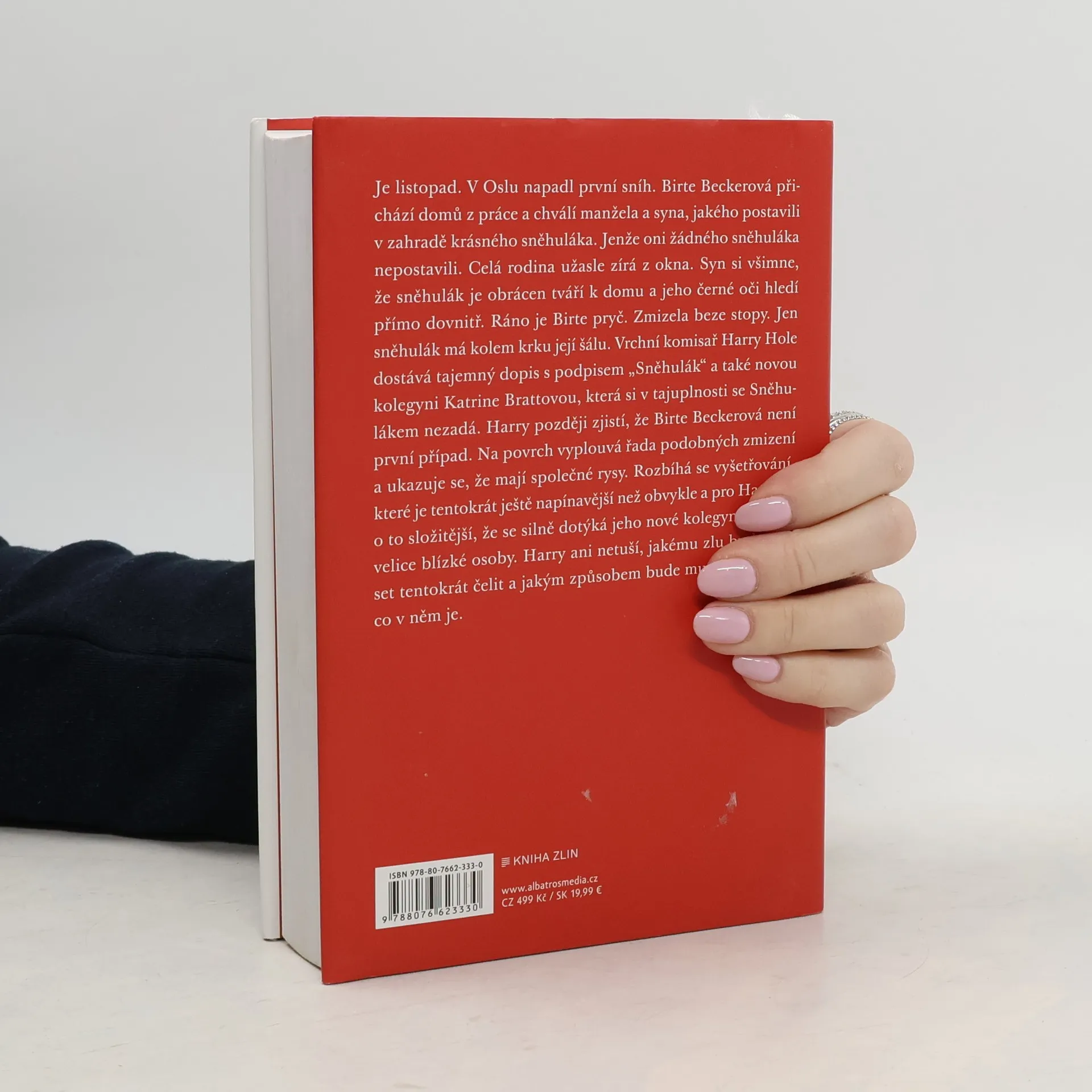 S prvním sněhem přichází Sněhulák a někoho si vezme s sebou. 7. díl krimi série o detektivu Harrym Holeovi. Je listopad. V Oslu napadl první sníh. Birte Beckerová přichází domů z práce a chválí manžela a syna, jakého postavili v zahradě krásného sněhuláka. Jenže oni žádného sněhuláka nepostavili. Celá rodina užasle zírá z okna. Syn si všimne, že sněhulák je obrácen tváří k domu a jeho černé oči hledí přímo dovnitř. Ráno je Birte pryč. Zmizela bez stopy. Jen sněhulák má kolem krku její šálu.