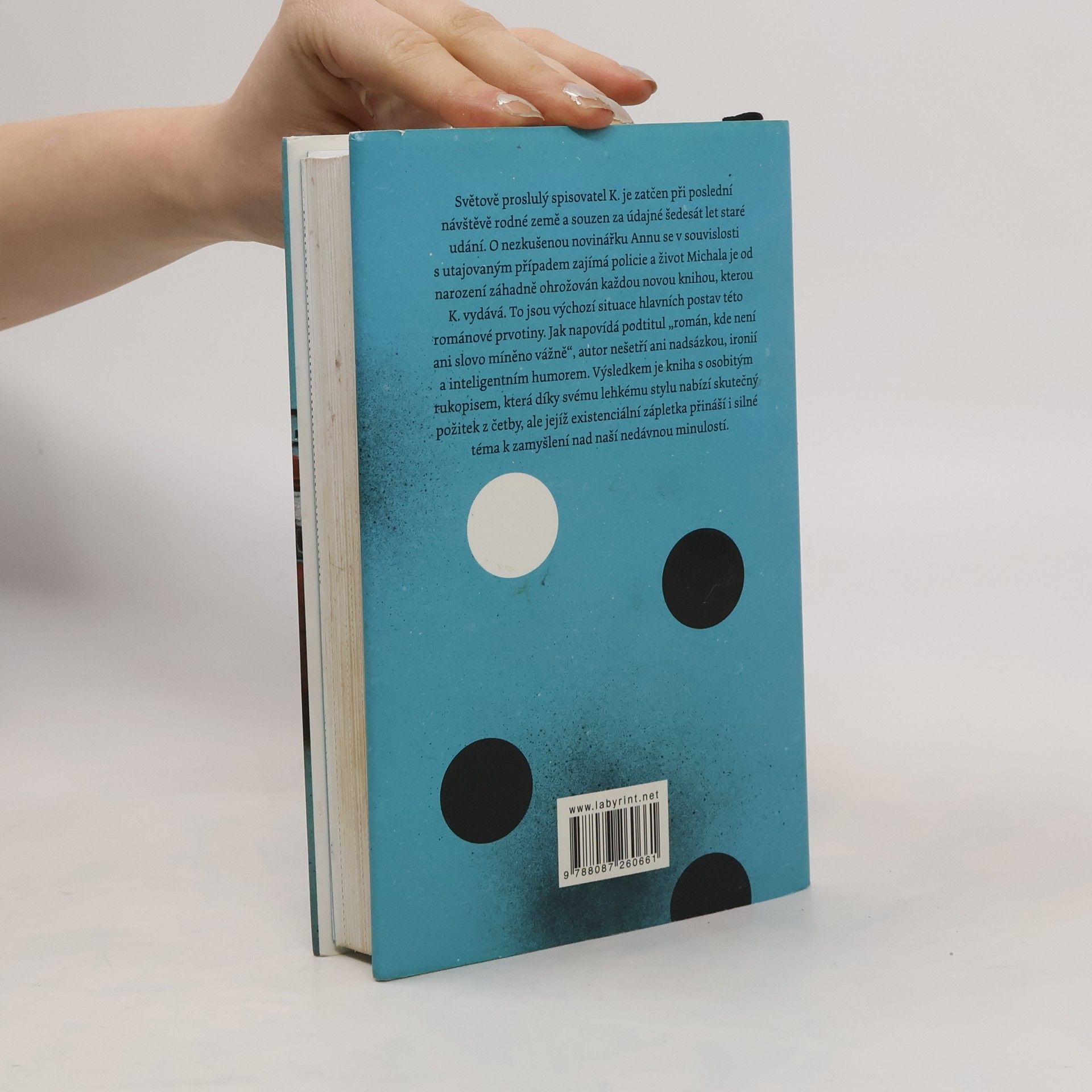 Světově proslulý spisovatel K., žijící v Paříži, je zatčen při poslední návštěvě rodné země a souzen za údajné šedesát let staré udání vedoucí k zatčení mladého agenta-chodce. O nezkušenou novinářku Annu se v souvislosti s utajovaným případem zajímá policie a život Michala je od narození záhadně ohrožován každou novou knihou, kterou K. vydává. To jsou výchozí situace hlavních postav této románové prvotiny, avšak jak napovídá podtitul „román, kde není ani slovo míněno vážně“, vedle odkazů na dílo a osobnost slavného romanopisce českého původu se zde nešetří ani nadsázkou, ironií a inteligentním humorem. Výsledkem je kniha s velmi osobitým rukopisem, která díky svému lehkému stylu přináší skutečný požitek z četby, ale jejíž existenciální zápletka přináší i silné téma k zamyšlení nad naší nedávnou minulostí.