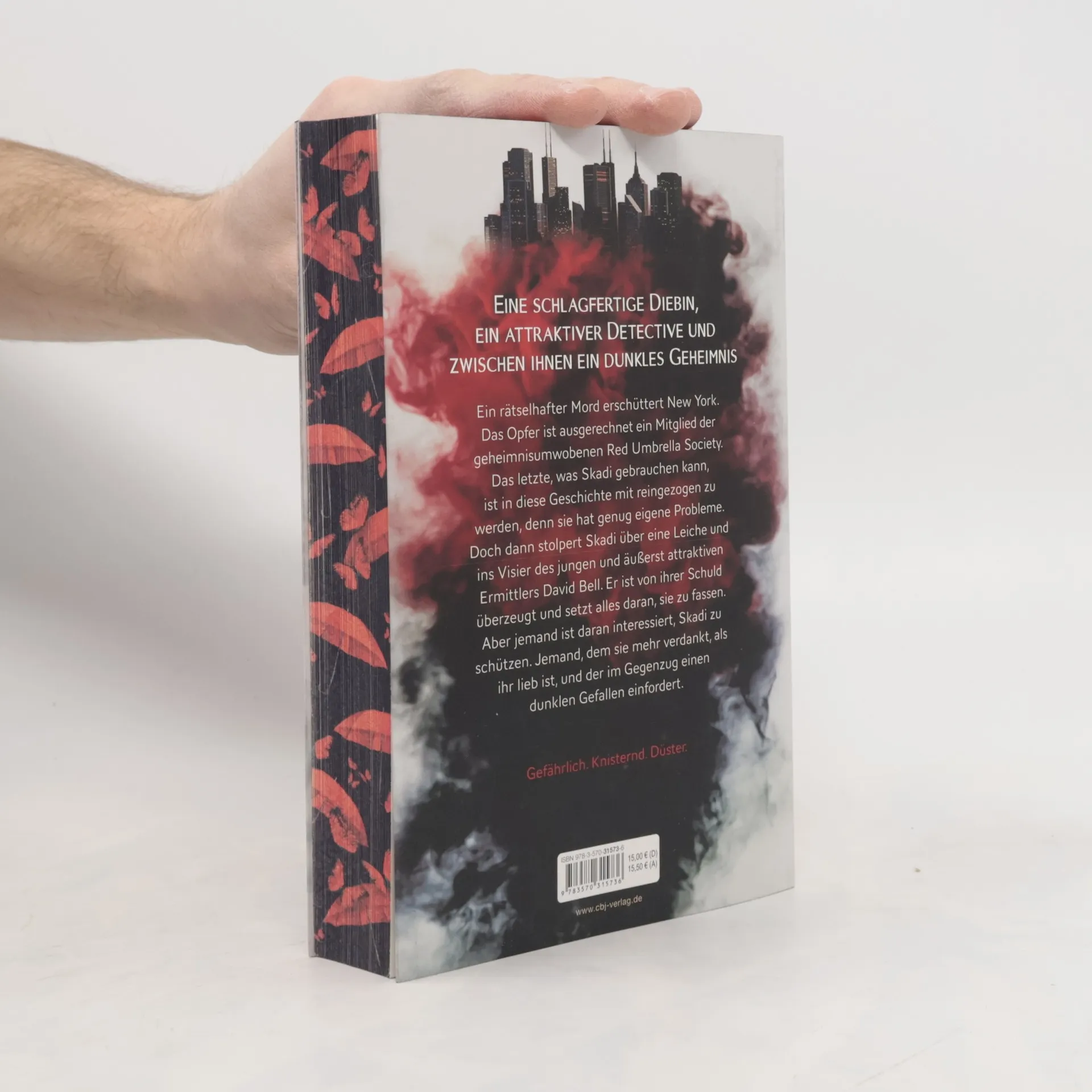 Eine schlagfertige Diebin, ein attraktiver Detective und zwischen ihnen ein dunkles Geheimnis Ein rätselhafter Mord erschüttert New York. Das Opfer ist ausgerechnet ein Mitglied der mächtigen und geheimnisvollen Red Umbrella Society, deren Mitglieder angeblich über besondere Fähigkeiten verfügen. Das letzte, was Skadi gebrauchen kann, ist in diese Geschichte mit reingezogen zu werden, denn sie hat genug eigene Probleme. Sie und ihr Bruder schulden einem skrupellosen Untergrundboss Geld und müssen für ihn riskante Jobs erledigen. Doch dann stolpert Skadi bei einem dieser Aufträge über die Leiche und ins Visier des jungen und äußerst attraktiven Ermittlers David Bell. Er ist von ihrer Schuld überzeugt und setzt alles daran, sie zu fassen. Aber jemand ist daran interessiert, Skadi zu schützen. Jemand, dem sie mehr verdankt, als ihr lieb ist und der im Gegenzug einen dunklen Gefallen einfordert. Der Auftakt der spannenden Urban-Fantasy-Dilogie voller prickelnder Gefühle und einer düsteren Geheimgesellschaft. Alle Bände der »Red Umbrella Society«-Reihe: Der Kuss des Schmetterlings (Band 1) Der Biss der Schlange (Band 2)