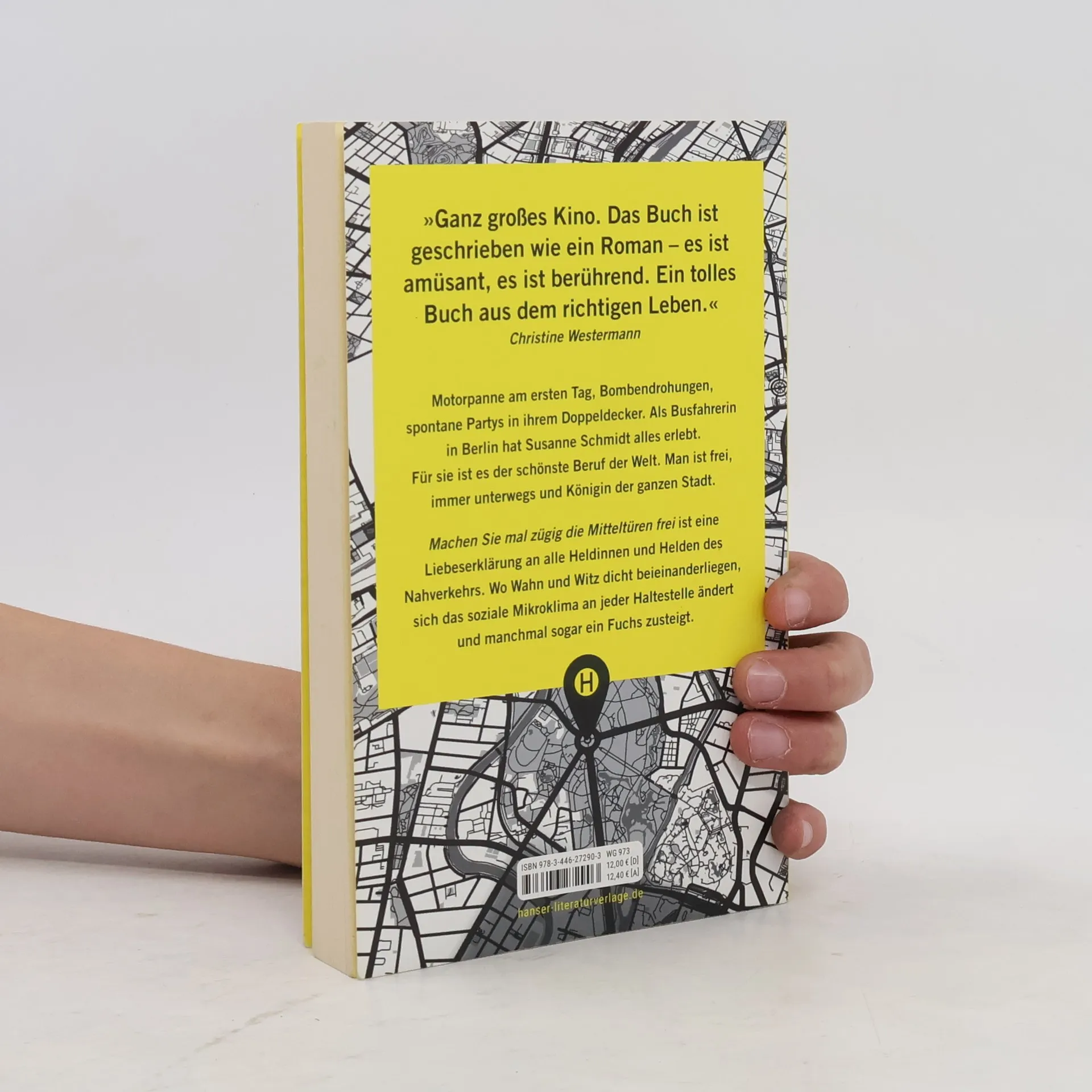 Eine Liebeserklärung an die wilde Welt des öffentlichen Nahverkehrs Motorpanne am ersten Tag, Bombendrohungen, spontane Partys in ihrem Doppeldecker. Als Busfahrerin in Berlin hat Susanne Schmidt schon alles erlebt. Für sie ist es der schönste Beruf der Welt. Man ist frei, immer unterwegs und Königin der ganzen Stadt. „Machen Sie mal zügig die Mitteltüren frei“ ist eine Liebeserklärung an alle Heldinnen und Helden des Nahverkehrs. Wo Wahn und Witz dicht beieinanderliegen, sich das soziale Mikroklima an jeder Haltestelle ändert und manchmal sogar ein Fuchs zusteigt. Nach der Lektüre werden Sie Ihre nächste Busfahrerin mit anderen Augen sehen. „Die Neugier der Großstadt ist überall zu finden. Die Suche danach beginnt mit dem Warten auf den nächsten Bus.“