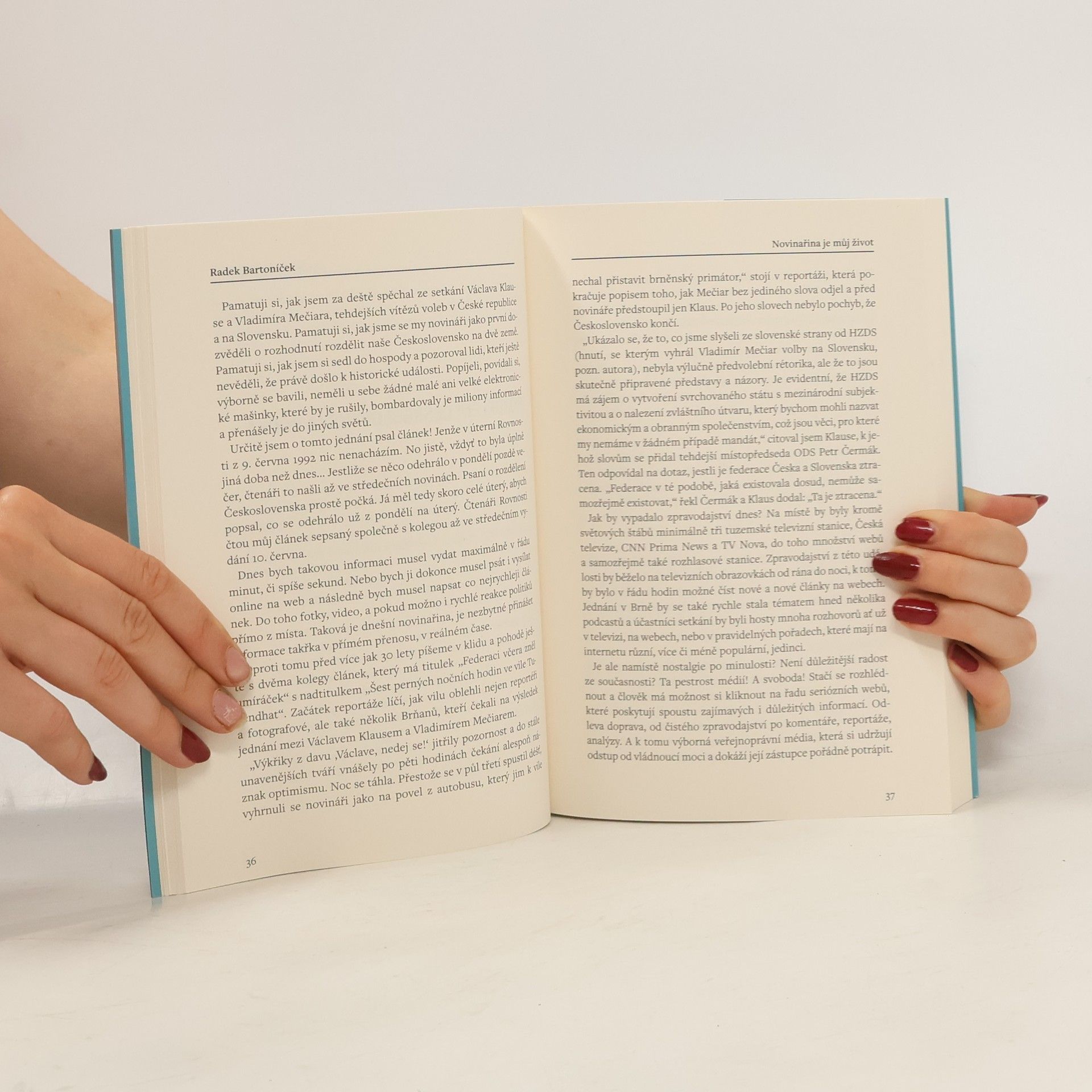 Dlouholetý novinář o radostech a strastech své profese. „Být u toho tady a teď.“ To je hlavní přikázání, podle nějž se řídil celý profesní život novináře Radka Bartoníčka. Referoval o rozpadu Československa, pokrýval nespočet voleb a zlomových událostí, dělal rozhovory s vrcholovými politiky a dával hlas i lidem, kteří běžně slyšet nejsou. Jak to vypadá, když je práce zároveň posláním, vášní i koníčkem? Dá se stoprocentní oddanost žurnalistice skloubit s rodinou a osobním životem? Upřímná zpověď ukazuje krásy i běsy novinařiny v té nejsyrovější podobě.