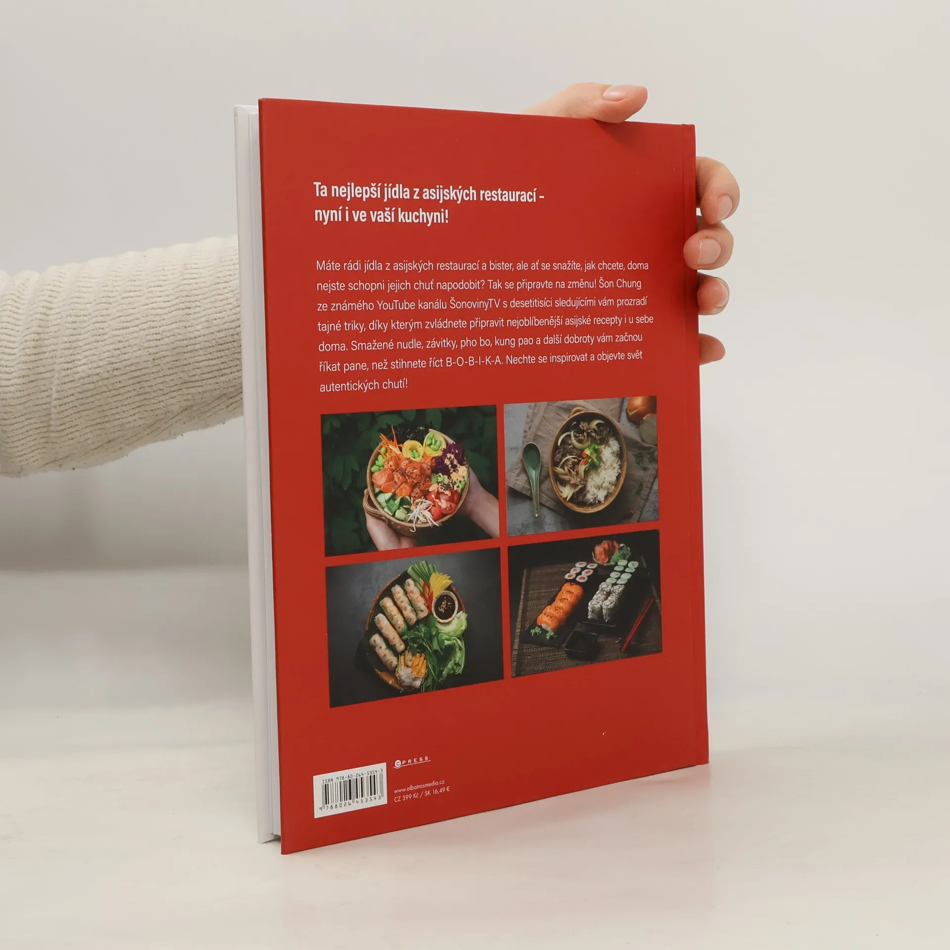 Recepty z bister i kuchyní. Ta nejlepší jídla z asijských restaurací – nyní i ve vaší kuchyni! Máte rádi jídla z asijských restaurací a bister, ale ať se snažíte, jak chcete, doma nejste schopni jejich chuť napodobit? Tak se připravte na změnu! Šon Chung ze známého YouTube kanálu ŠonovinyTV s desetitisíci sledujícími vám prozradí tajné triky, díky kterým zvládnete připravit nejoblíbenější asijské recepty i u sebe doma. Smažené nudle, závitky, pho bo, kung pao a další dobroty vám začnou říkat pane, než stihnete říct B-O-B-I-K-A. Nechte se inspirovat a objevte svět autentických chutí!