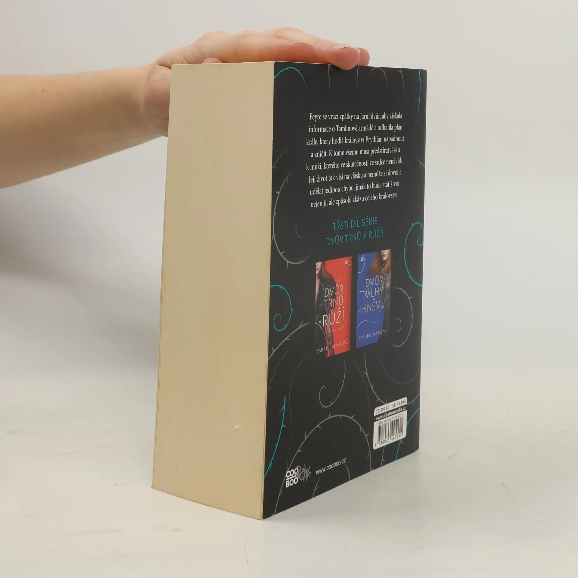 Feyre se vrátila na Jarní dvůr, odhodlaná získat informace o Tamlinových manévrech a jeho spolupráci s Hybernem. Aby to udělala, musí se zapojit do smrtícího tance podvodů – a v něm může jeden chybný krok přivodit zkázu nejen jí, ale i celému světu. Feyre čeká nesnadné rozhodnutí, komu z oslnivých a smrtících Vladařů věřit...
