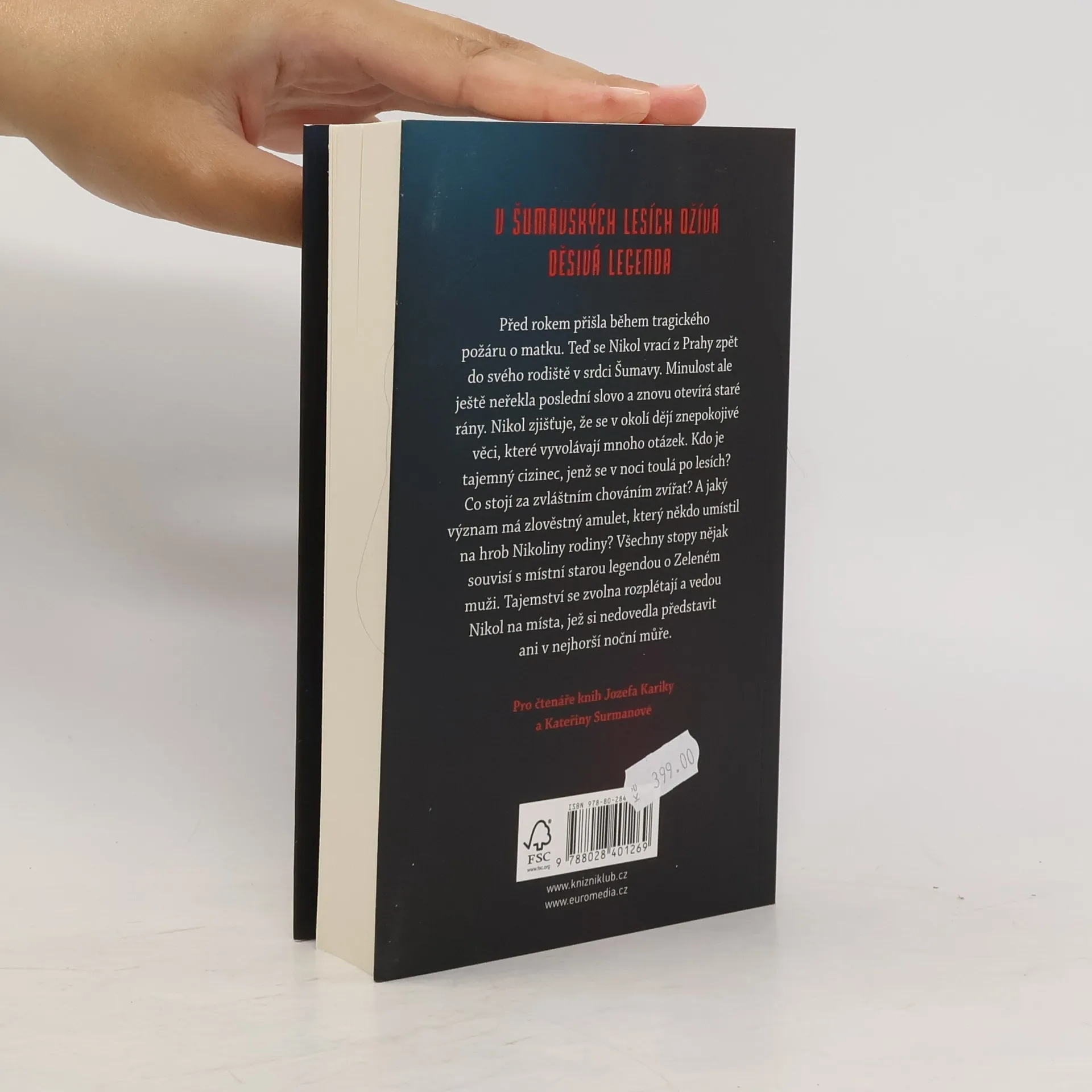 Před rokem přišla během tragického požáru o matku. Teď se Nikol vrací z Prahy zpět do rodného města v srdci Šumavy. Minulost ale ještě neřekla své poslední slovo a znovu otevírá staré rány. Nikol zjišťuje, že se v okolí dějí znepokojivé věci, které vyvolávají mnoho otázek. Kdo je tajemný cizinec, jenž se v noci toulá po lesích? Co stojí za zvláštním chováním zvířat? A jaký význam má zlověstný amulet, který někdo umístil na hrob Nikoliny rodiny? Všechny stopy nějak souvisí s místní starou legendou o Zeleném muži. Tajemství se zvolna rozplétají a vedou Nikol na místa, jež si nedovedla představit ani v nejhorší noční můře. Ve stínech hvozdu se skrývá zlo. A žízní po krvi…