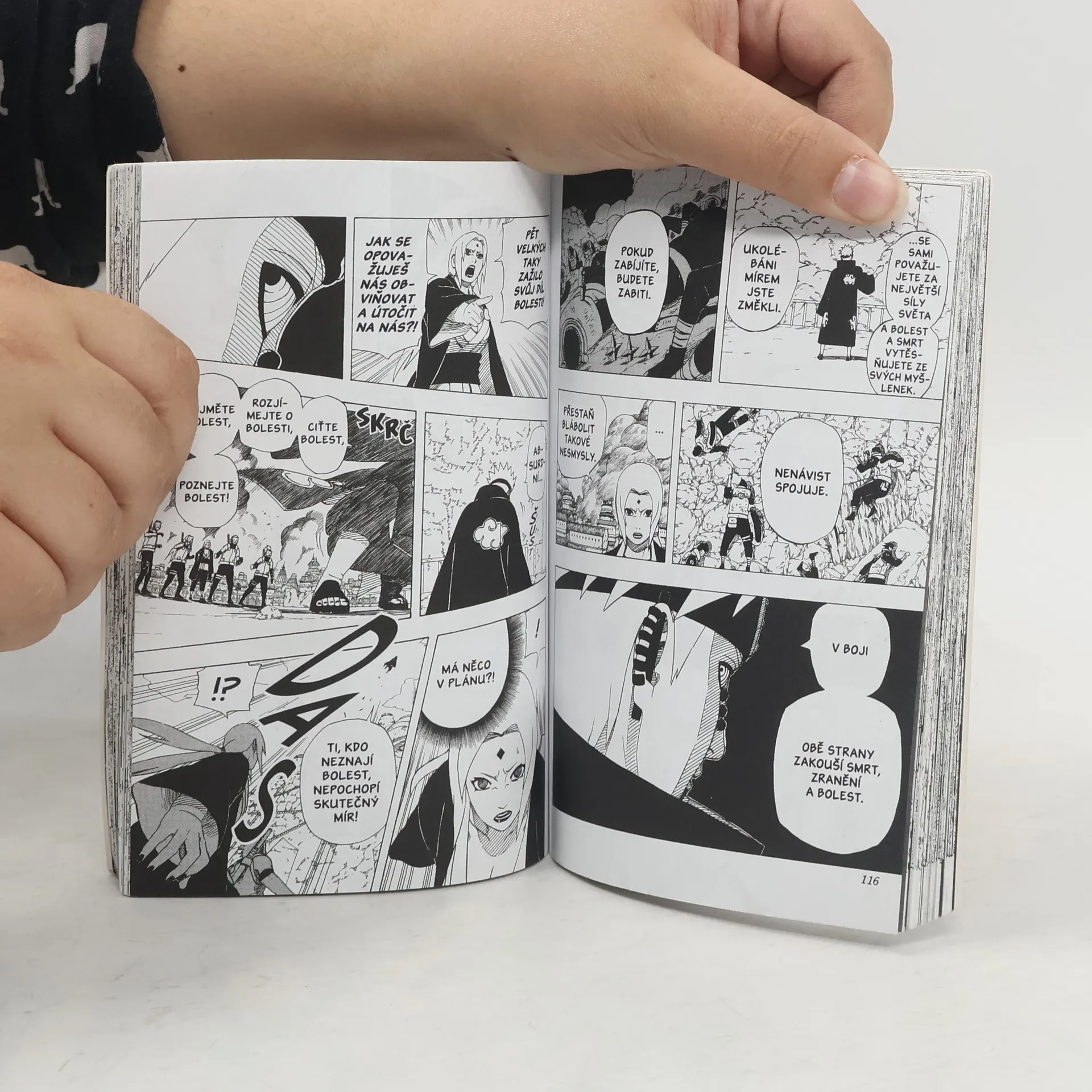 Dlouho plánovaný útok Akacuki na Konohu je konečně tu! Pain s Konan pronikají obranou a v ulicích vesnice pátrají po informacích o Narutovi. Ten však zatím o útoku nic netuší a na Tajuplné hoře dál zkouší proniknout do správného užívání módu mudrce. Stihne se Naruto vrátit včas, aby zachránil milovanou Konohu?