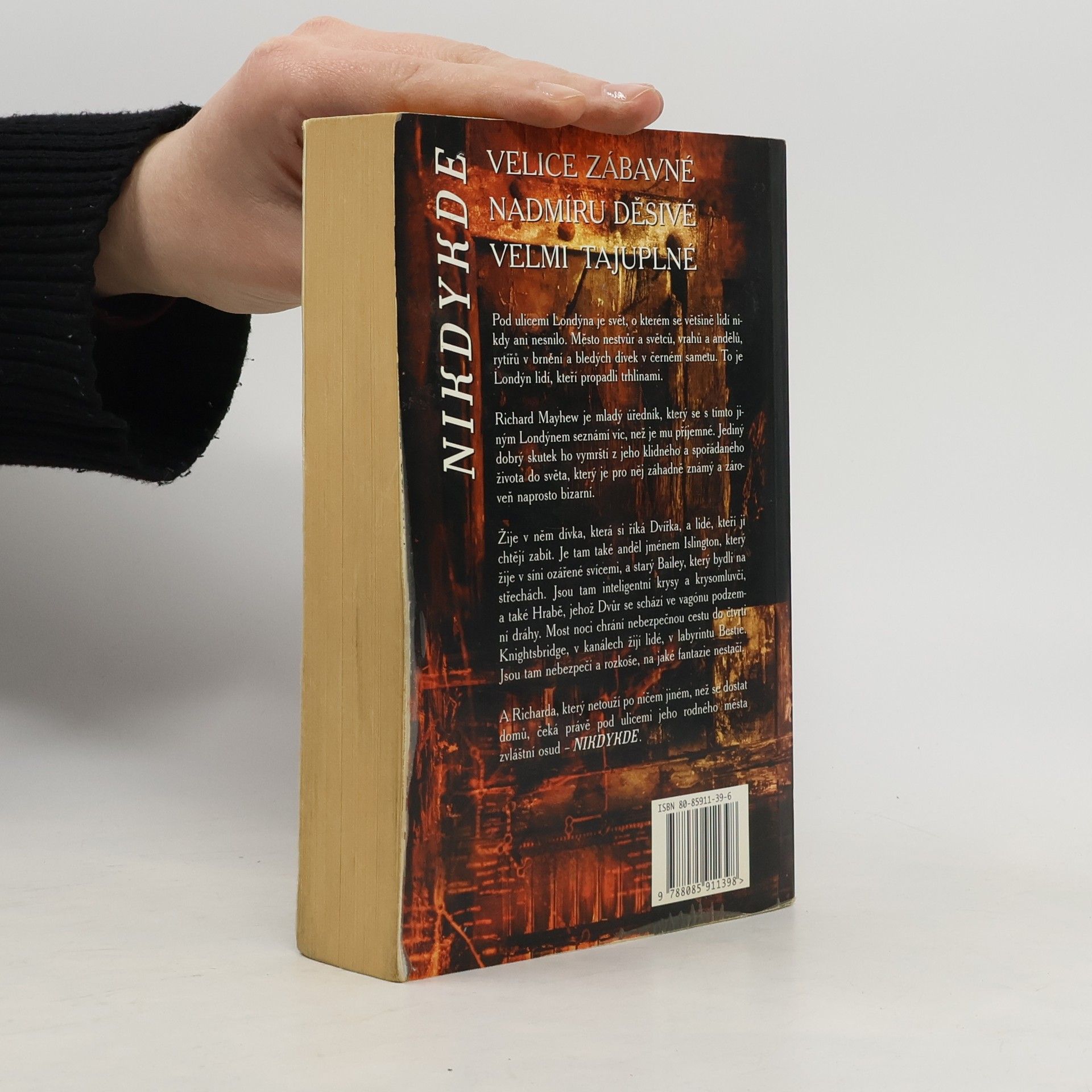 Pod ulicemi Londýna je svět, o kterém se většině lidí nikdy ani nesnilo. Město nestvůr a světců, vrahů a andělů, rytířů v brnění a bledých dívek v černém sametu. To je Londýn lidí, kteří propadli trhlinami. Richard Mayhew je mladý úředník, který se s tímto jiným Londýnem seznámí víc, než je mu příjemné. Jediný dobrý skutek ho vymrští z jeho klidného a spořádaného života do světa, který je pro něj záhadně známý a zároveň naprosto bizarní. Žije v něm dívka, která si říká Dvířka, a lidé kteří ji chtějí zabít. Je tam také anděl jménem Islington, který žije v síni ozářené svícemi, a starý Bailey, který bydlí na střechách. Jsou tam inteligentní krysy a krysomluvčí, a také Hrabě, jehož Dvůr se schází ve vagónu podzemní dráhy. Most noci chrání nebezpečnou cestu do čtvrti Knightsbridge, v kanálech žijí lidé, v labyrintu Bestie. Jsou tam nebezpečí a rozkoše, na jaké fantazie nestačí. A Richarda, který netouží po ničem jiném, než se dostat domů, čeká právě pod ulicemi jeho rodného města zvláštní osud – Nikdykde.