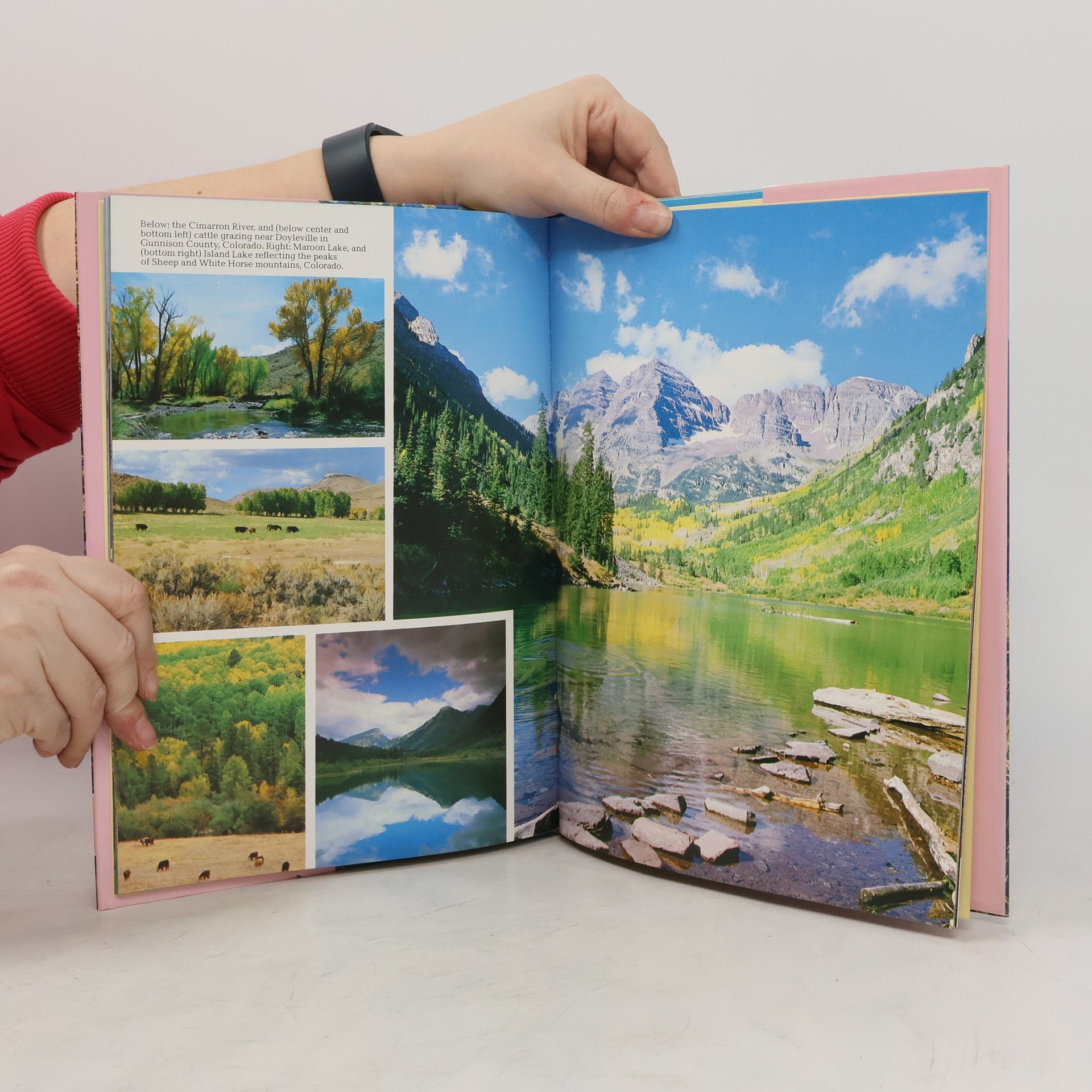 Captioned photographs depict the diversity of American scenery and culture in urban, rural, wilderness, colonial, and native settings