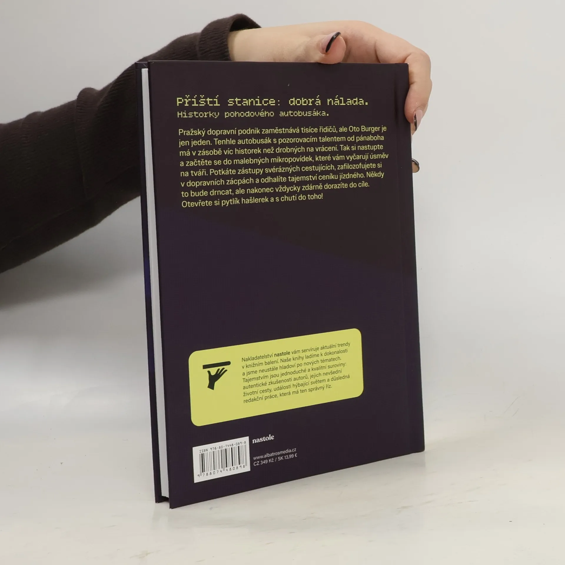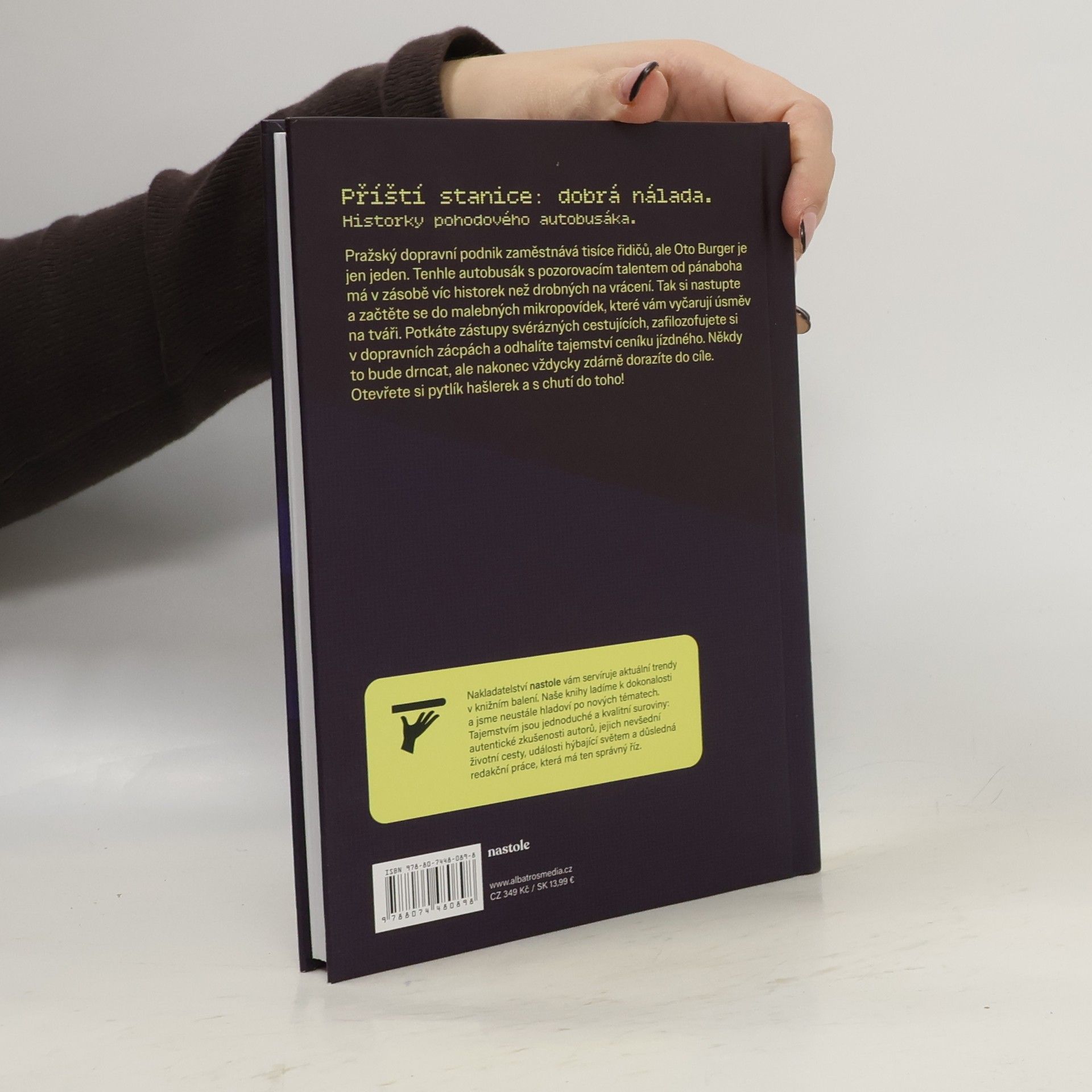 Příští stanice: dobrá nálada. Historky pohodového autobusáka. Pražský dopravní podnik zaměstnává tisíce řidičů, ale Oto Burger je jen jeden. Tenhle autobusák s pozorovacím talentem od pánaboha má v zásobě víc historek než drobných na vrácení. Tak si nastupte a začtěte se do malebných mikropovídek, které vám vyčarují úsměv na tváři. Potkáte zástupy svérázných cestujících, zafilozofujete si v dopravních zácpách a odhalíte tajemství ceníku jízdného. Někdy to bude drncat, ale nakonec vždycky zdárně dorazíte do cíle. Otevřete si pytlík hašlerek a s chutí do toho! Nakladatelská anotace.