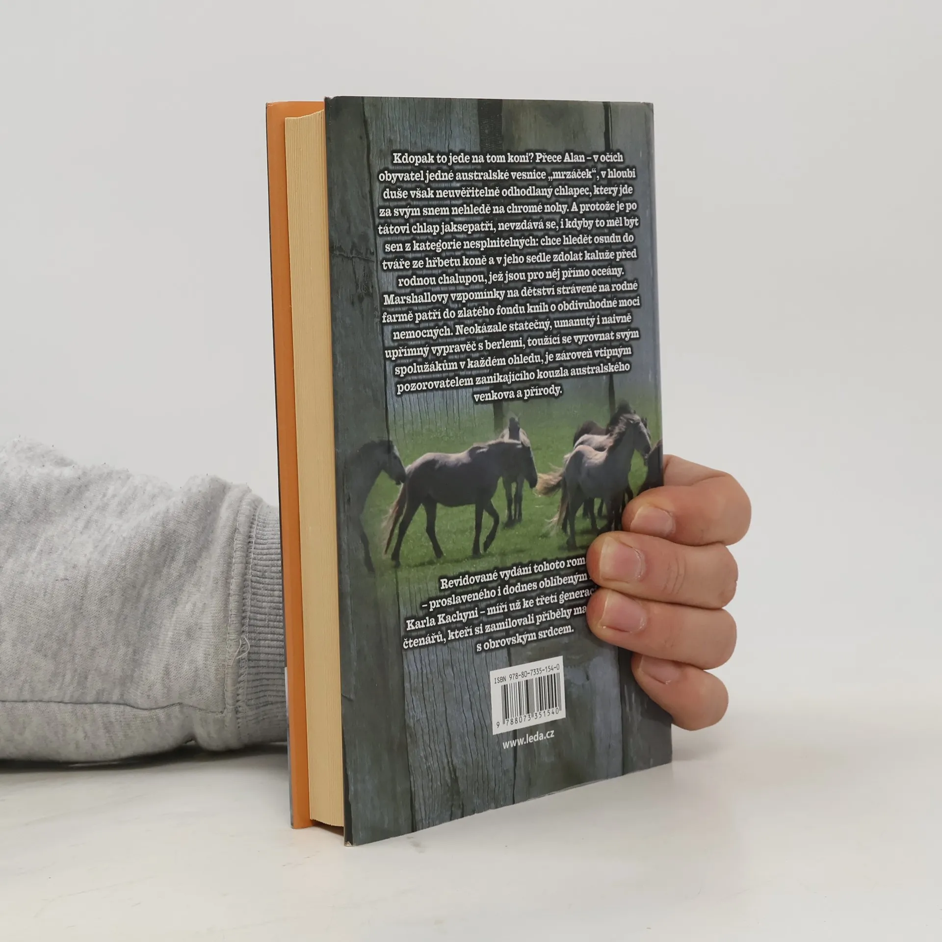 Kdopak to jede na tom koni? Přece Alan – v očích obyvatel jedné australské vesnice „mrzáček“, v hloubi duše však neuvěřitelně odhodlaný chlapec, který jde za svým snem nehledě na chromé nohy. A protože je po tátovi chlap jaksepatří, nevzdává se, i kdyby to měl být sen z kategorie nesplnitelných: chce hledět osudu do tváře ze hřbetu koně a v jeho sedle zdolat kaluže před rodnou chalupou, jež jsou pro něj přímo zdolanými oceány. Marshallovy vzpomínky na dětství strávené na rodné australské farmě patří do zlatého fondu knih o obdivuhodné moci nemocných. Neokázale statečný, umanutý i naivně upřímný vypravěč s berlemi, toužící se vyrovnat svým spolužákům v každém ohledu, je zároveň vtipným pozorovatelem zanikajícího kouzla australského venkova a přírody. Revidované vydání tohoto románu –proslaveného i dodnes oblíbeným filmem Karla Kachyni s Vladimírem Dlouhým v hlavní roli – míří už ke třetí generaci českých čtenářů, kteří si zamilovali příběhy malých hrdinů s obrovským srdcem. Verše přeložila Hana Žantovská.