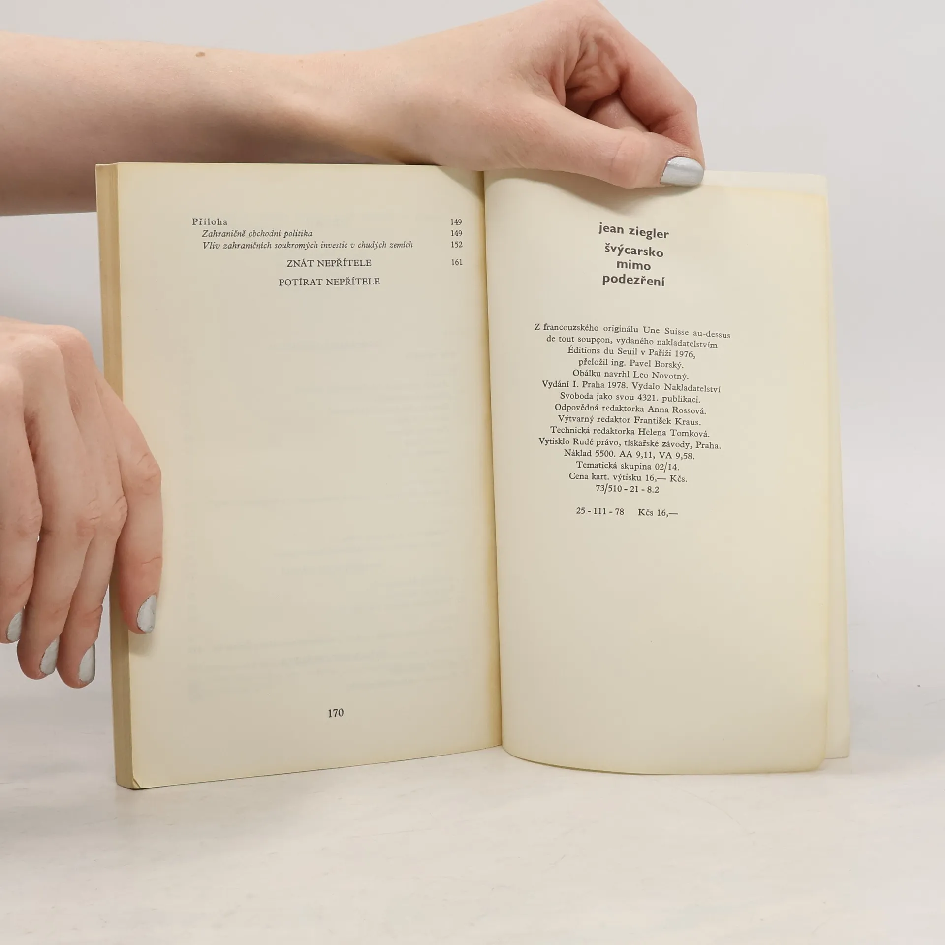 Na základě bohatého materiálu odhaluje švýcarský sociolog skutečnou tvář švýcarské vládnoucí třídy, která dík svému bankovnímu systému přispívá ke stabilizaci a posílení reakčních režimů v různých částech světa. Nemilosrdně odkrývá podstatu švýcarské pseudoneutrality i negativní úlohu své země v ideologickém boji.