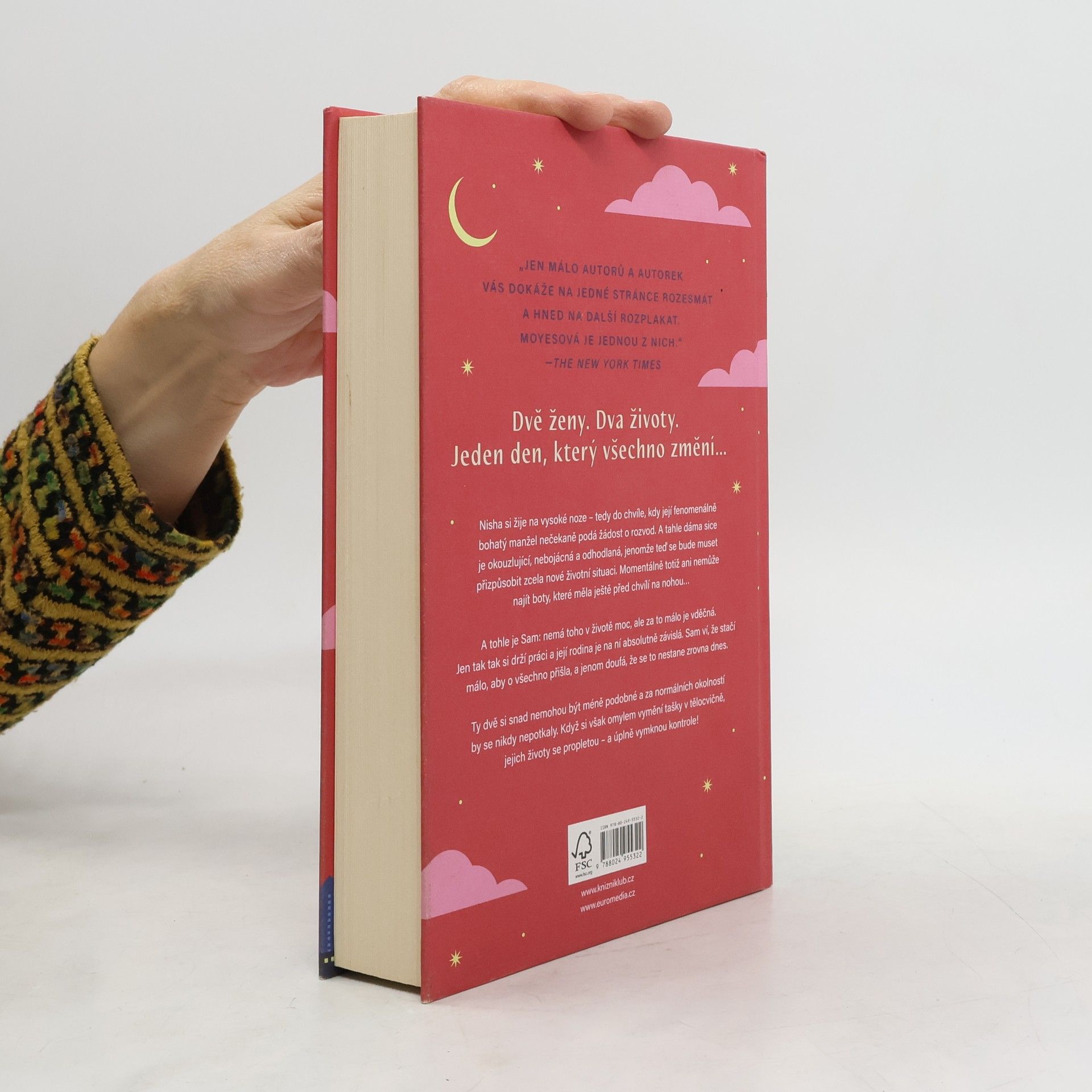 Seznamte se se Sam. Nemá toho moc, ale za to málo je vděčná: jen tak tak si drží svou práci a její rodina je na ni ve všech ohledech závislá. Ví, že ji jeden špatný den dělí od toho, aby o všechno přišla, a jenom doufá, že to nebude dnes… A tohle je Nisha. Má všechno, o čem vždycky snila, její manžel je fenomenálně bohatý a ona si žije na vysoké noze… tedy až do chvíle, kdy její muž podá žádost o rozvod. Sam a Nisha se nikdy neměly potkat. Ale když si omylem vymění tašky v tělocvičně, jejich životy se propletou – a úplně vymknou kontrole…
