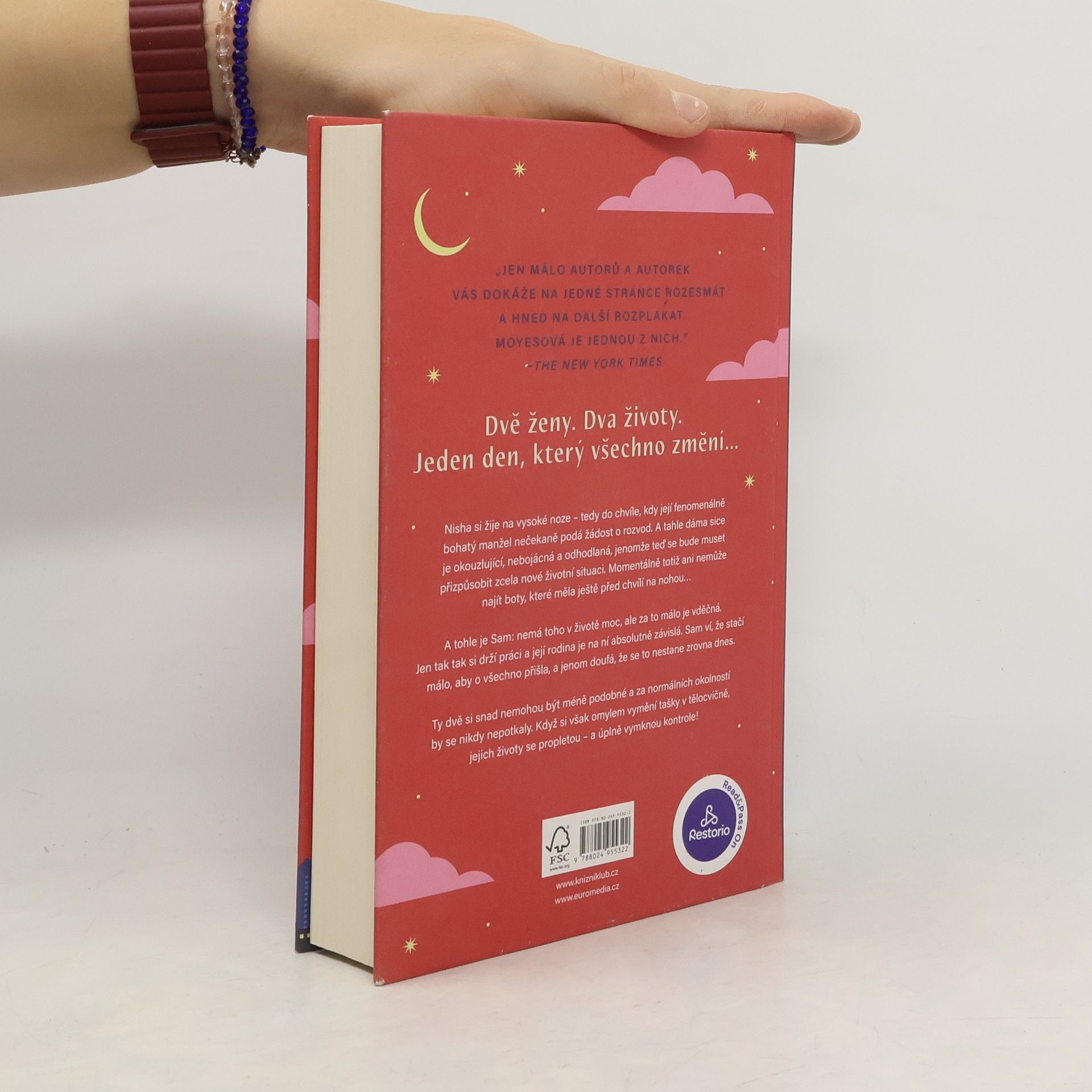 Seznamte se se Sam. Nemá toho moc, ale za to málo je vděčná: jen tak tak si drží svou práci a její rodina je na ni ve všech ohledech závislá. Ví, že ji jeden špatný den dělí od toho, aby o všechno přišla, a jenom doufá, že to nebude dnes… A tohle je Nisha. Má všechno, o čem vždycky snila, její manžel je fenomenálně bohatý a ona si žije na vysoké noze… tedy až do chvíle, kdy její muž podá žádost o rozvod. Sam a Nisha se nikdy neměly potkat. Ale když si omylem vymění tašky v tělocvičně, jejich životy se propletou – a úplně vymknou kontrole…