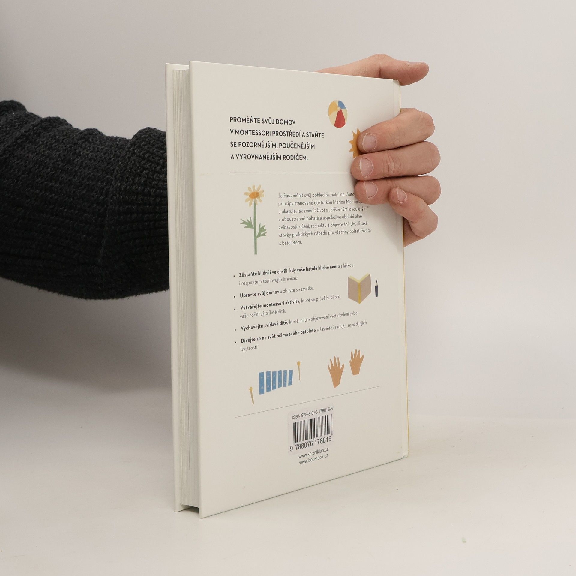 Srozumitelná a komplexní příručka k výchově batolat podle Montessori. Chcete najít způsob, jak si výchovu batolete víc užívat? Povzbuzovat svoje dítě k tomu, aby se rádo učilo? Dosáhnout toho, že dítě spolupracuje, aniž byste na něj křičeli, nebo se opakovali? Pak je tahle kniha pro vás to pravé. Montessori přístup vede děti k tomu, aby samy objevovaly svět vlastníma rukama a přebíraly odpovědnost, když je potřeba, zatímco dospělí fungují jako vedení. Tato kniha nabízí jednoduché, praktické rady, jak uplatnit zásady učení Montessori do každodenního života s dítětem ve věku do tří let.